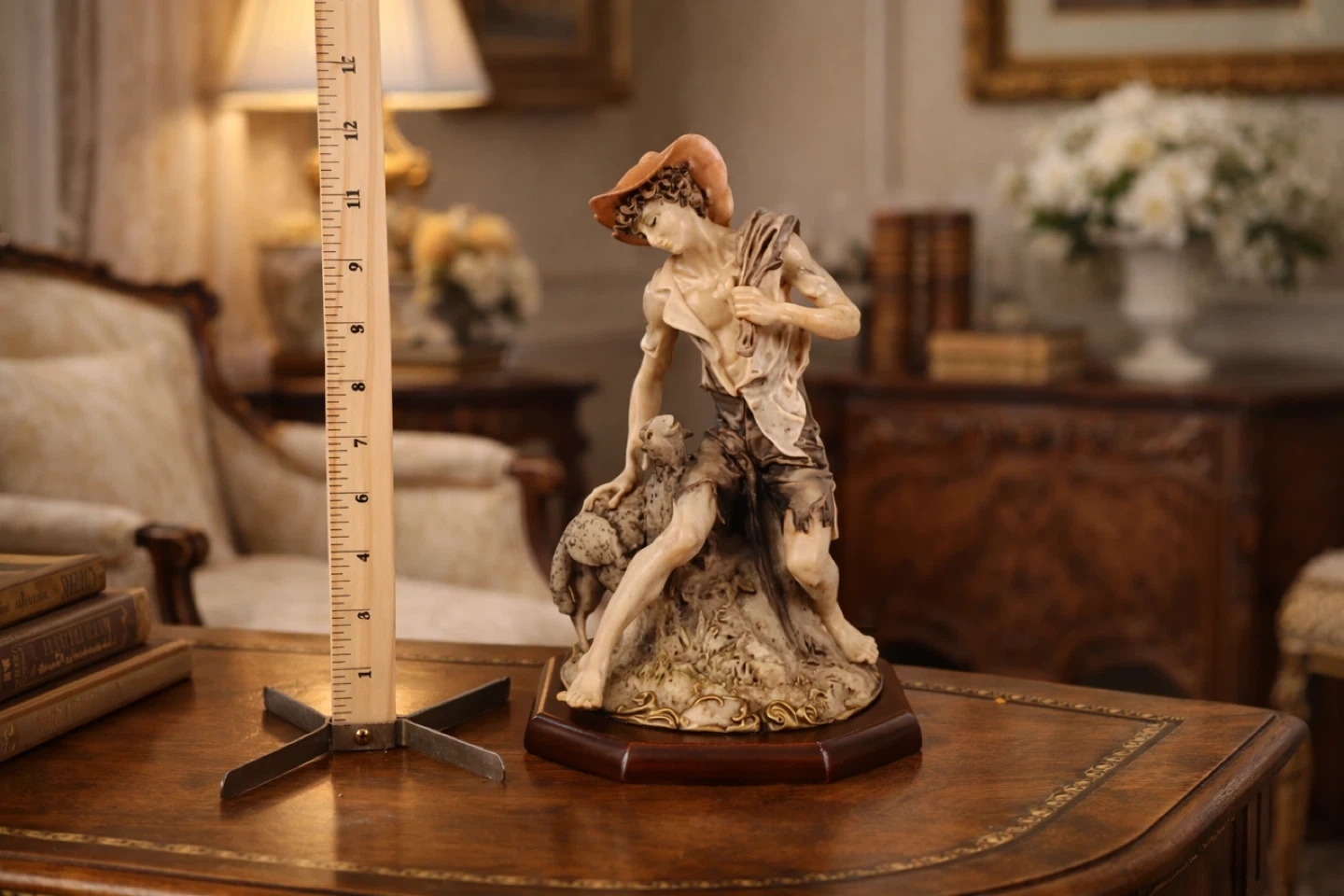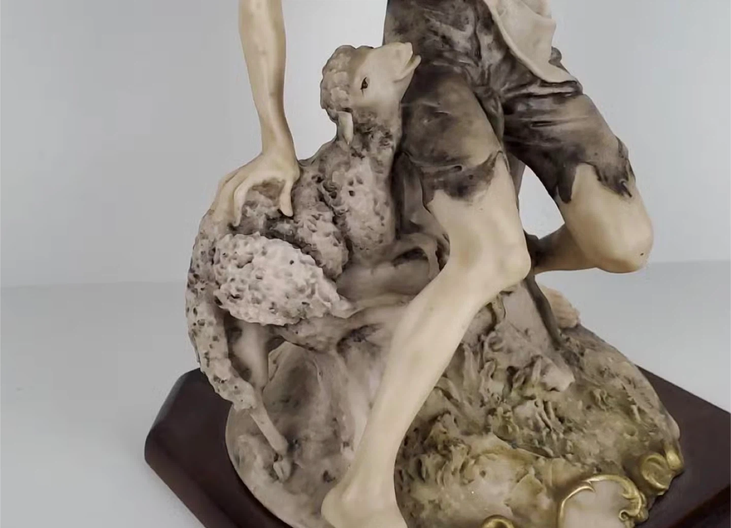 Beautiful signed Italian figurine by renowned sculptor Giuseppe Armani (1935–2006). Featuring a classical shepherd and lamb design with fine hand-painted details. Mounted on its original wooden base with gold-toned accents. Approximately 11 inches tall. A timeless collectible in excellent condition.