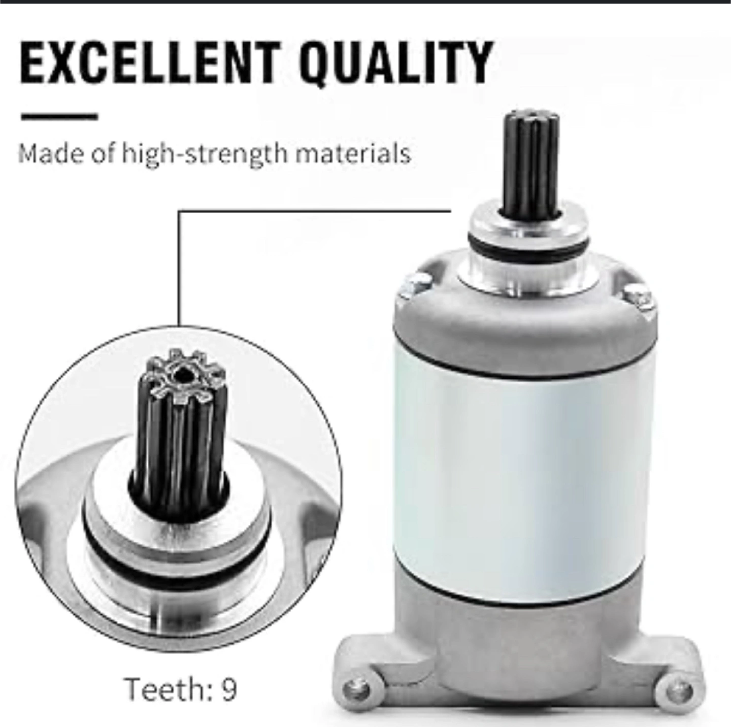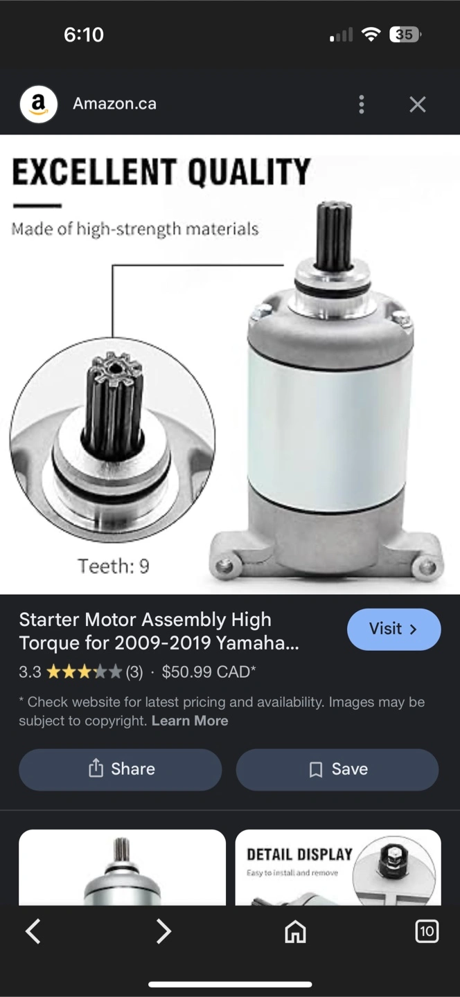 Selling a new starter motor assembly. It's made of high-strength materials. It has 9 teeth and is easy to install and remove. Dimensions are 6.18 inches in height, 3.62 inches in length, and 1.25 inches in width $105. Asking 30.