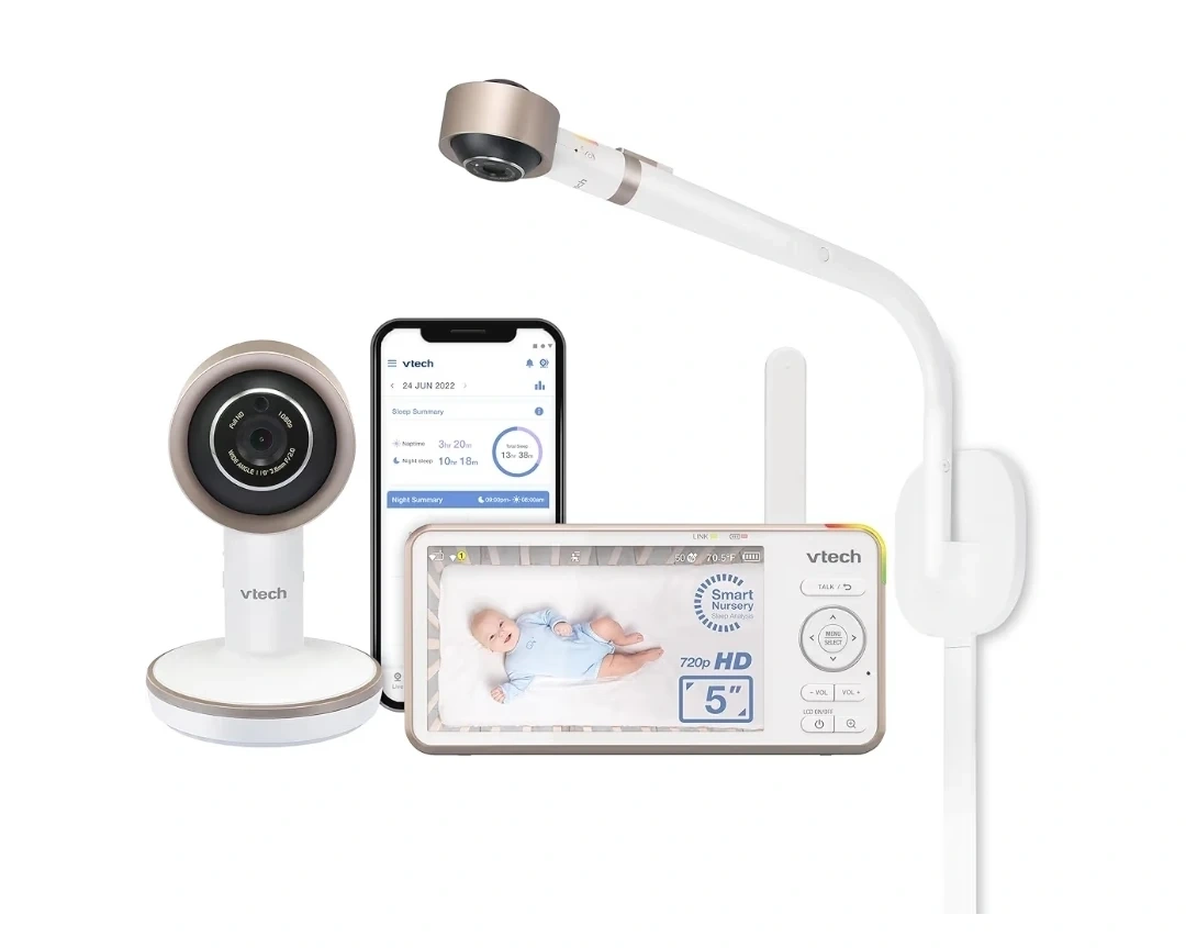 Keep a close, intelligent eye on your baby with this VTech V-Care over-the-crib smart baby monitor.