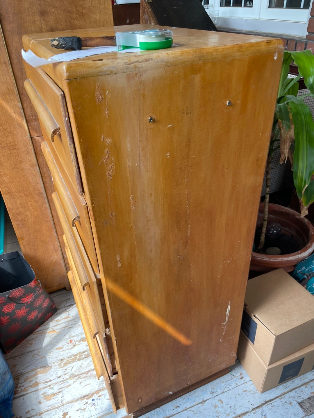This is a solid functional dresser. It could certainly use paint or finish but it has served us well.