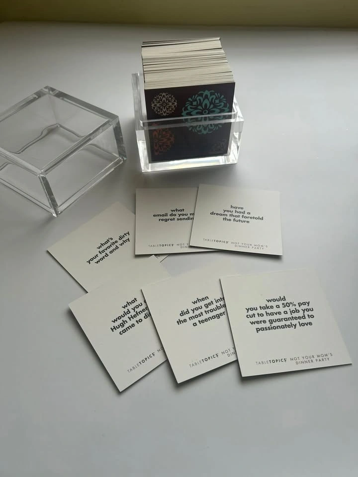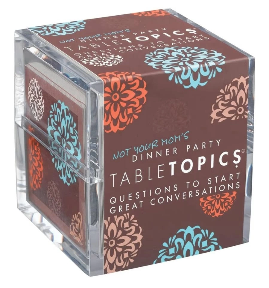 Table Topic: Not Your Mom’s Dinner Party Edition is a fun conversation card game filled with entertaining, thought-provoking, and sometimes hilarious questions that get everyone talking and laughing.