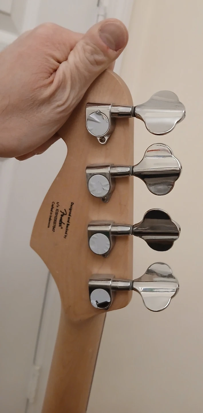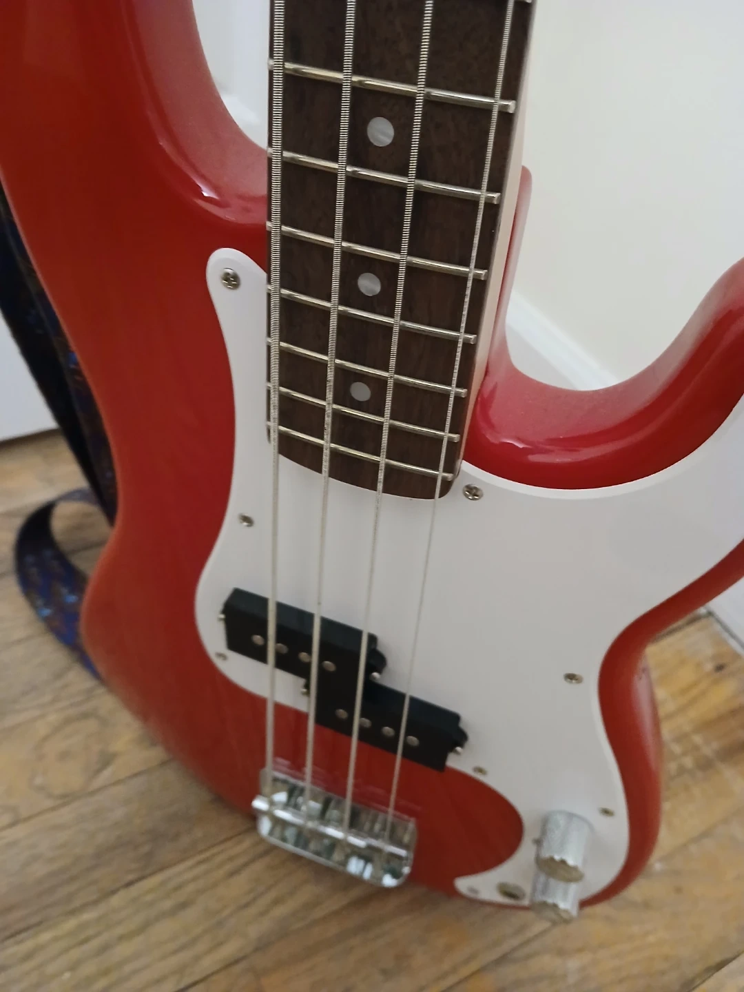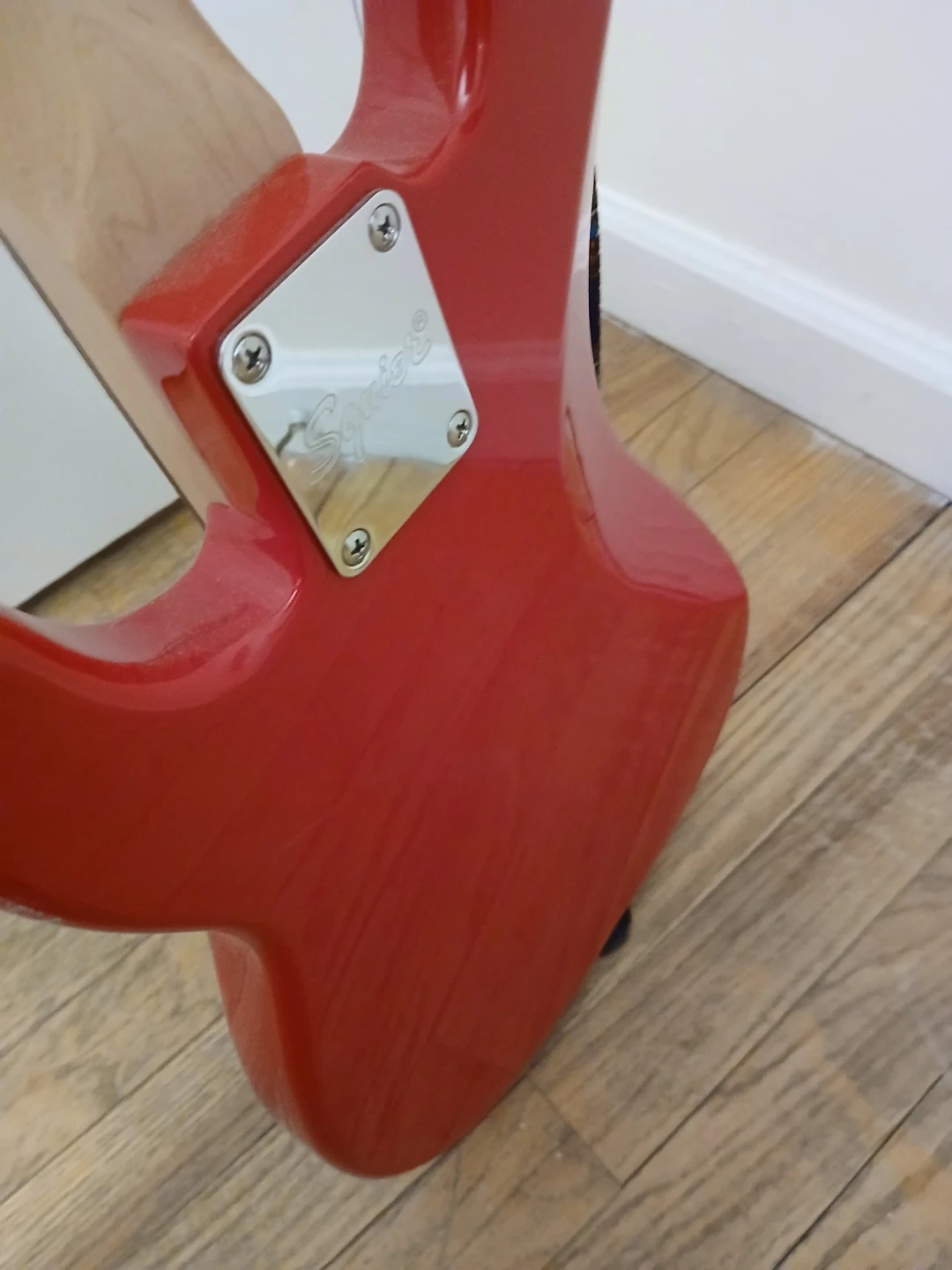 A Squier mini P-bass in Dakota Red, lightly used, by no means abused, in excellent condition -- like new.