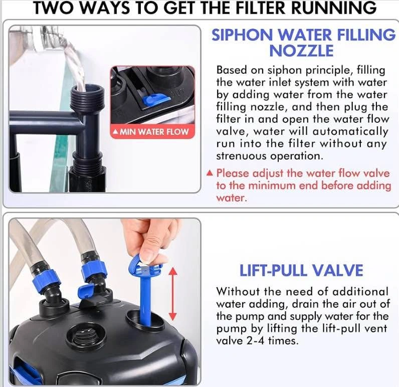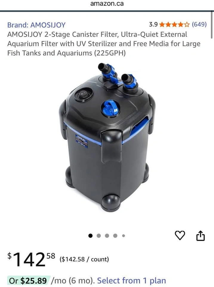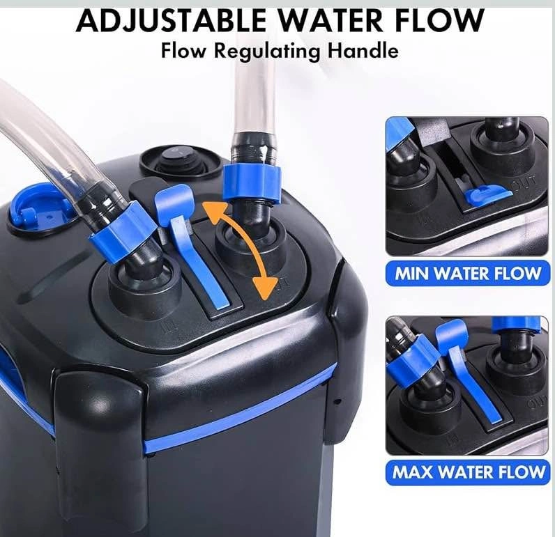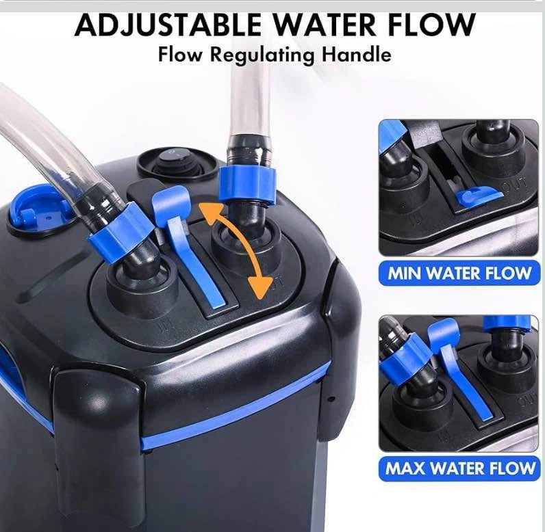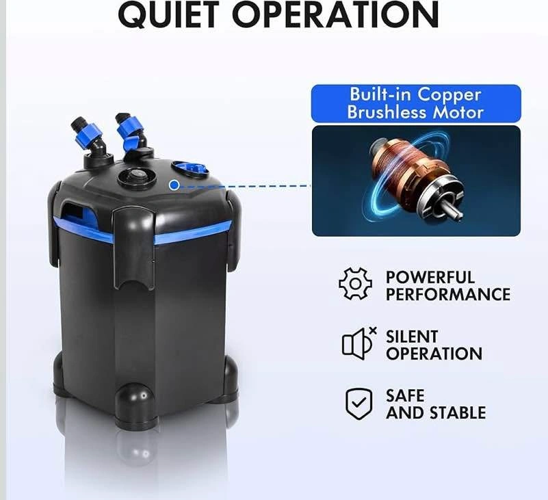 AMOSIJOY 2-Stage Canister Filter, Ultra-Quiet External Aquarium Filter with UV Sterilizer and Free Media for Large Fish Tanks and Aquariums (225GPH)