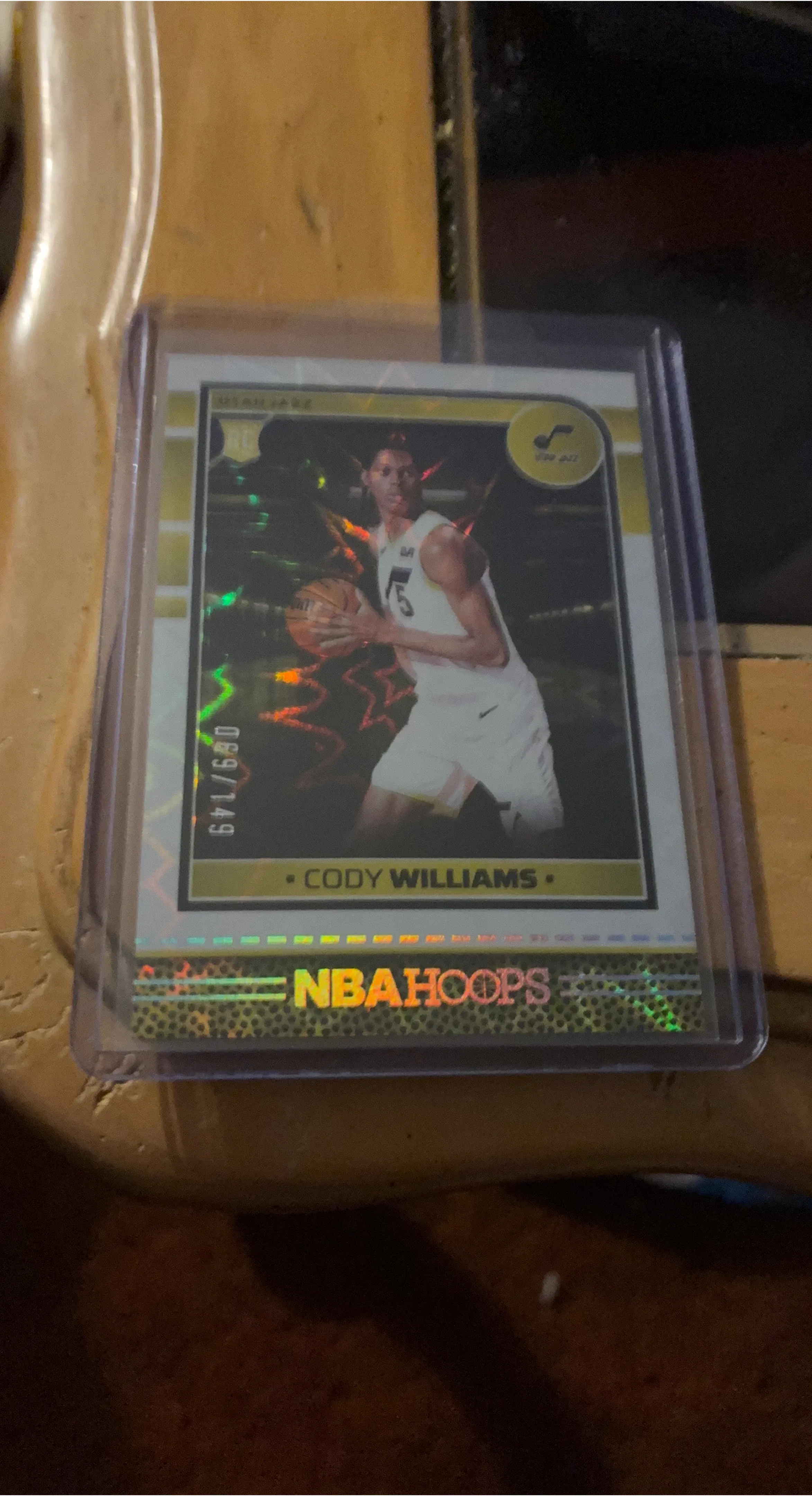 This is a 2023-24 NBA Hoops trading card featuring Cody Williams. It's serial numbered 89 out of 149. Perfect for any basketball card collector!