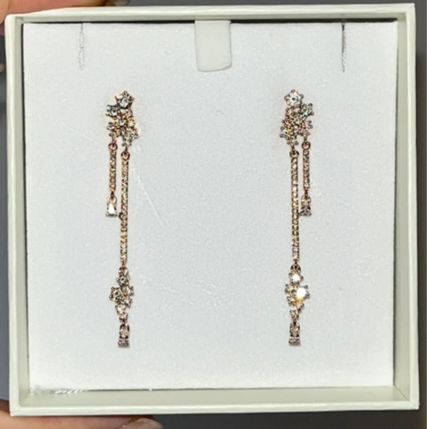 Elegant Atelier Swarovski dangle earrings in a rose gold tone finish.