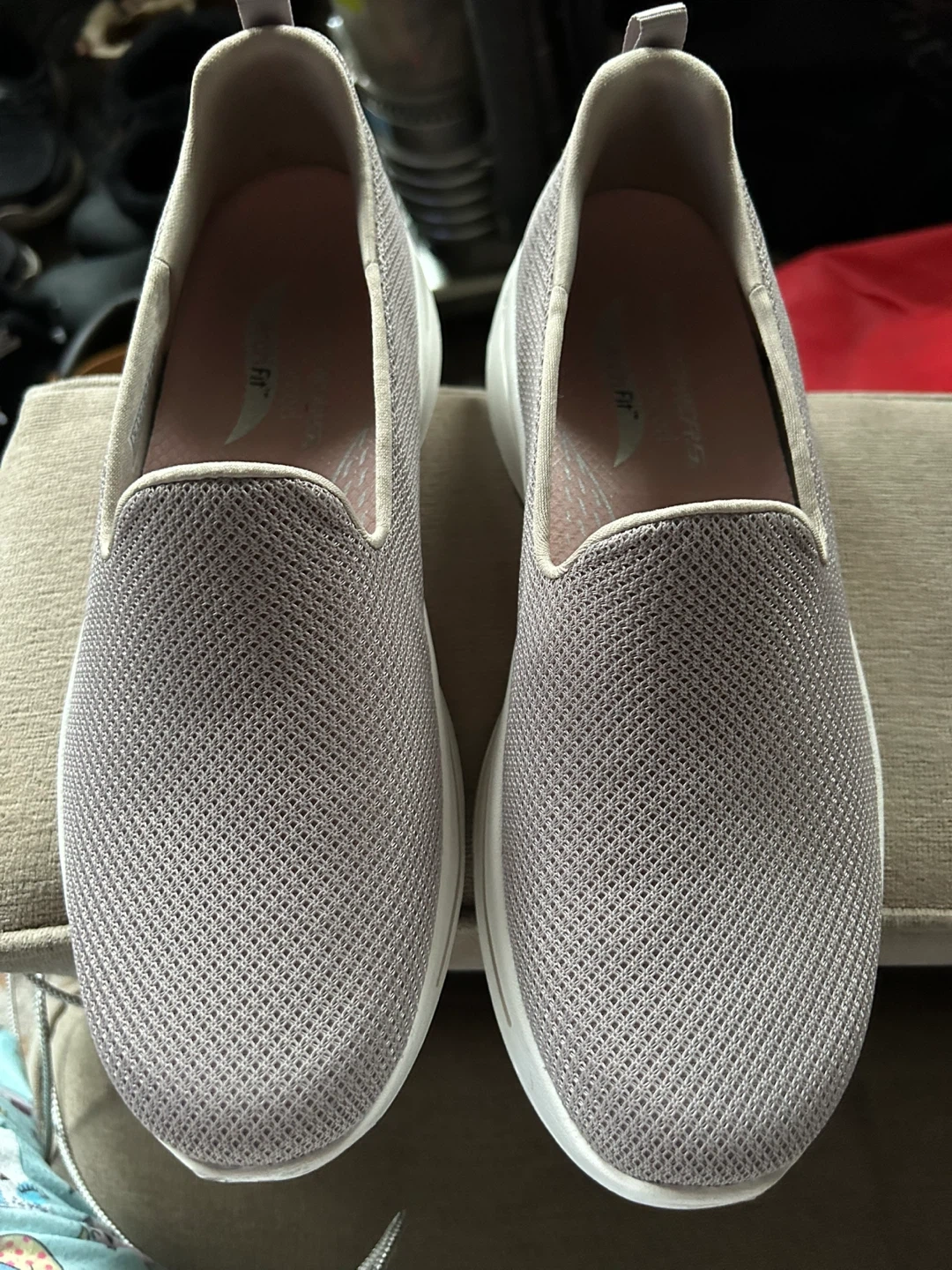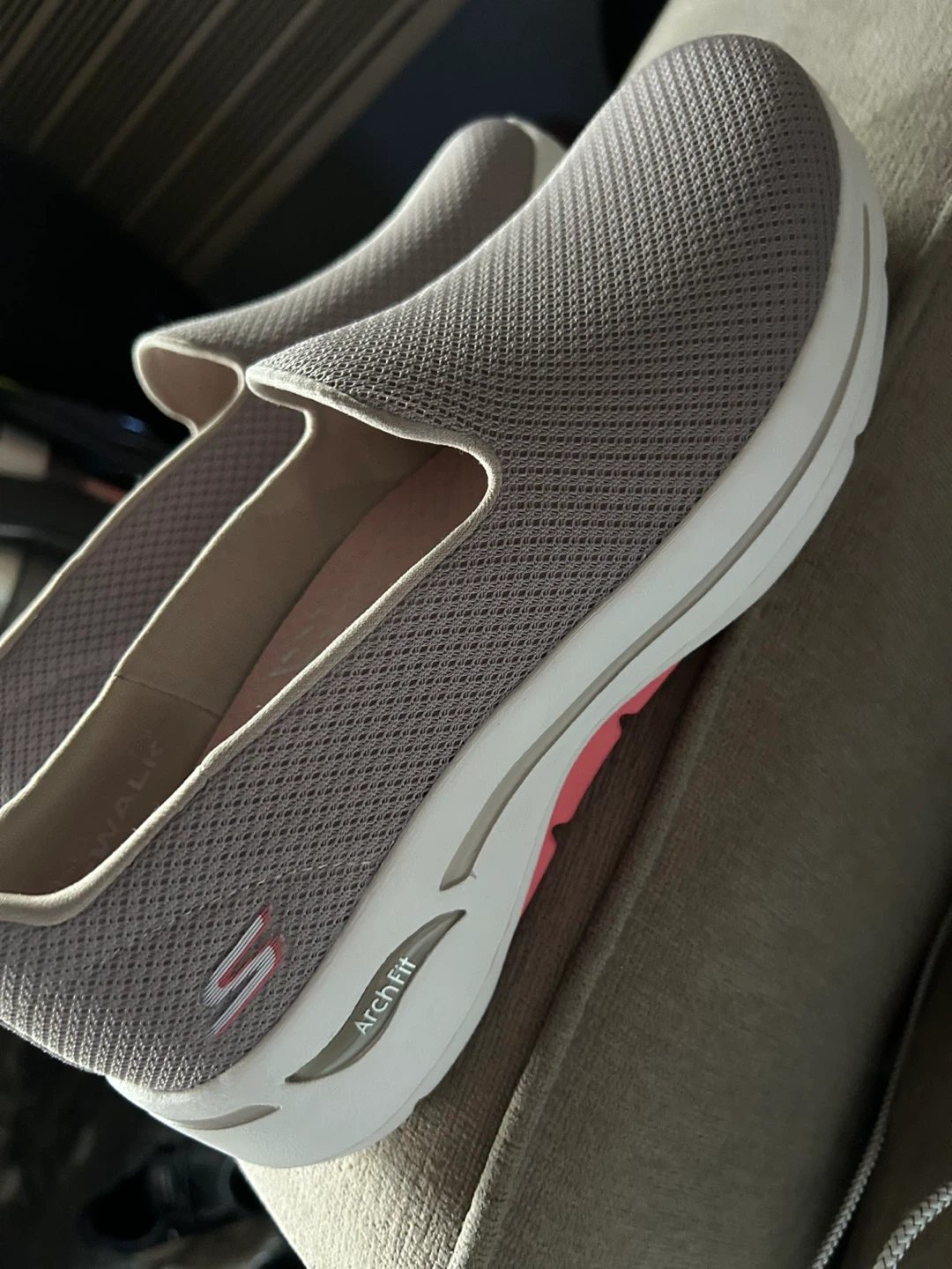 These are a pair of Skechers GO WALK Arch Fit shoes. They feature air-cooled technology for extra comfort. These are great for everyday wear!