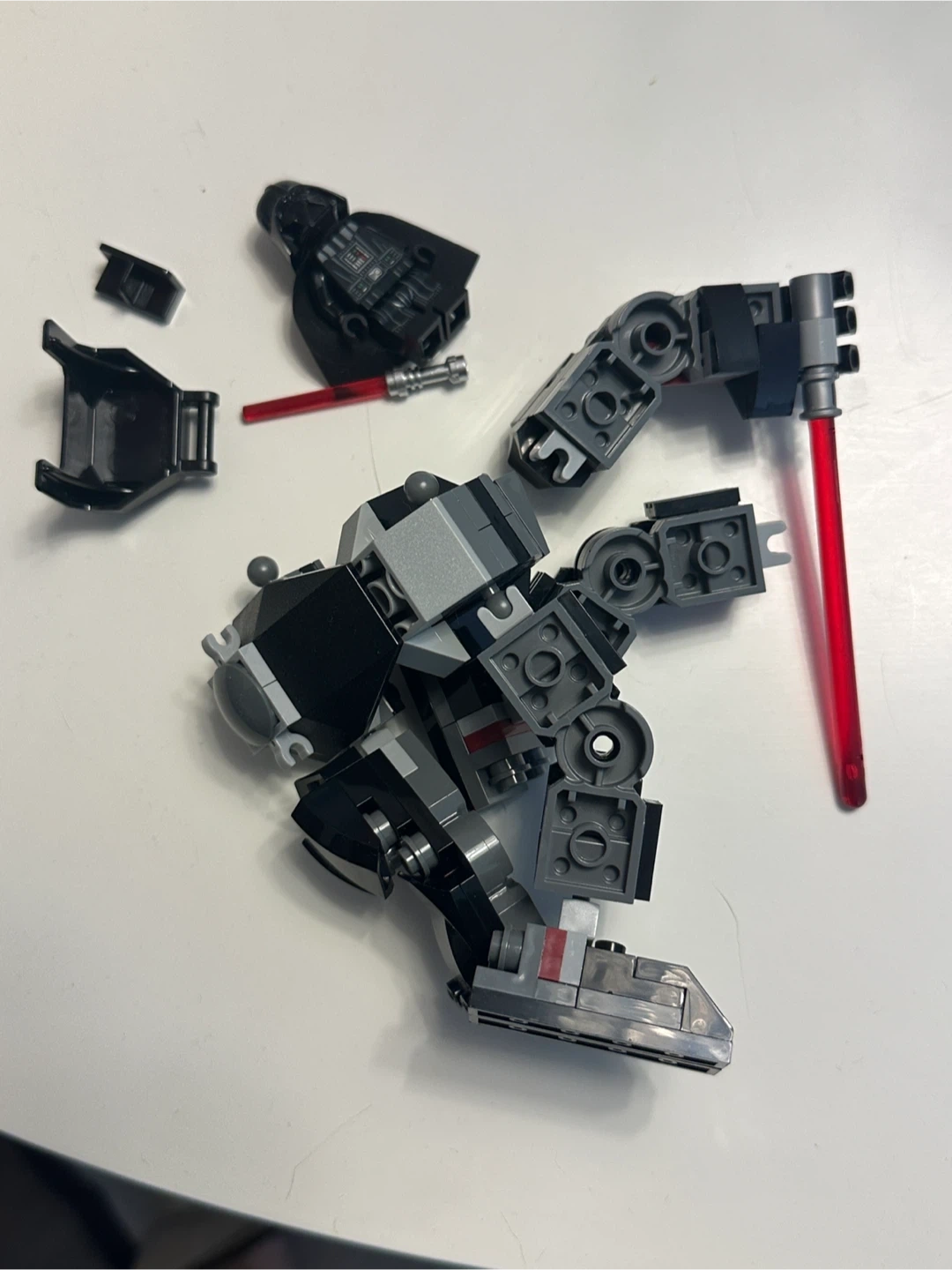 LEGO Star Wars Darth Vader Mech building toy. It includes a Darth Vader minifigure and a red lightsaber accessory. This set is great for Star Wars fans and LEGO enthusiasts!
