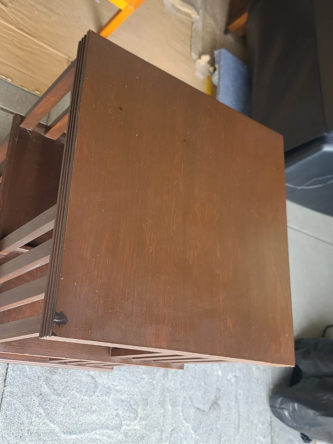 Sturdy dark brown wood bookshelf. Has two tiers with multiple square compartments. Good for books, plants, or decor. Compact size. Delivery can be arranged. Viewing and pickup by appointment