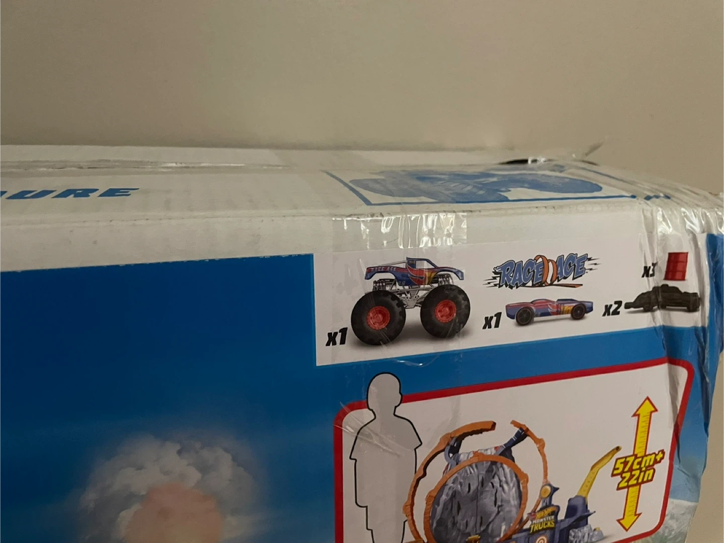 This Hot Wheels Monster Trucks T-Rex Volcano Arena playset is new for 2021. It features lights and sounds! Includes one monster truck and two other vehicles. Dimensions are 57cm x 22in.