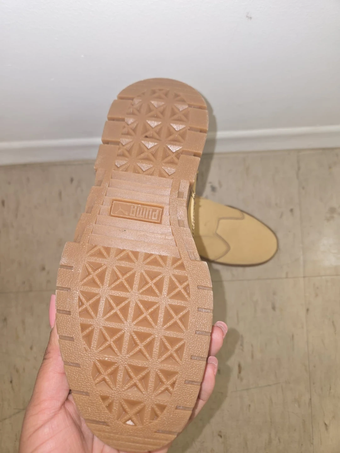 Classic Puma suede Chelsea boots in a tan colour. These boots feature a slip-on design with elasticated side panels. The durable rubber sole offers good traction. These boots are great for everyday wear.