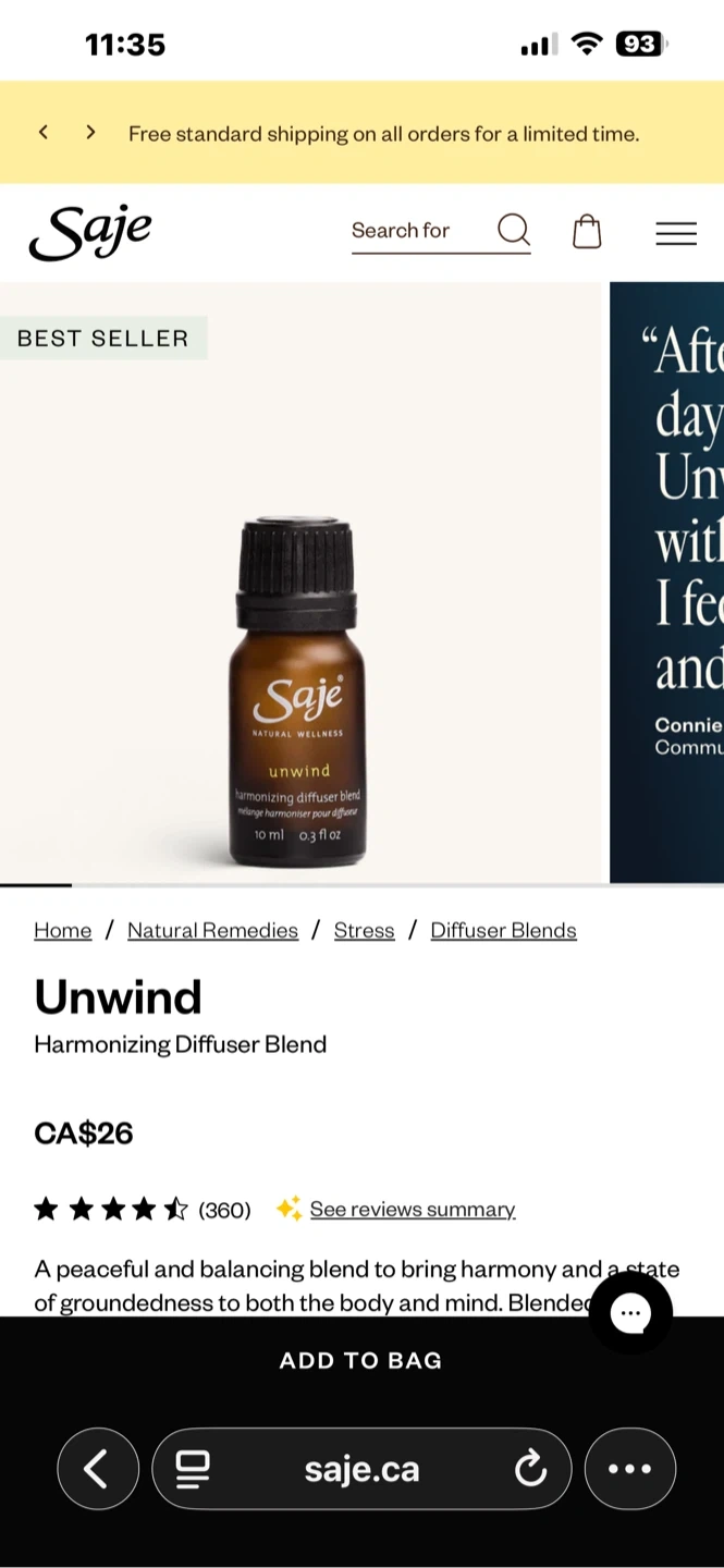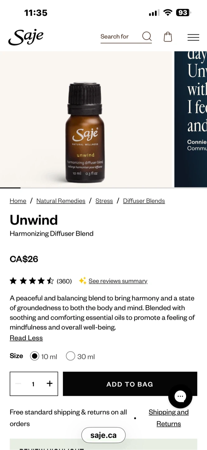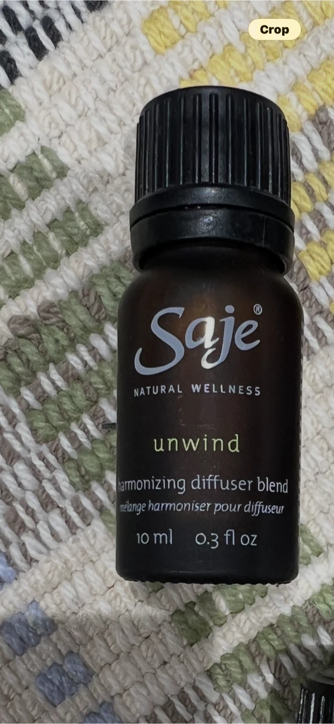 Saje Unwind harmonizing diffuser blend. This blend is 10 ml. It's designed to bring harmony and a state of groundedness.