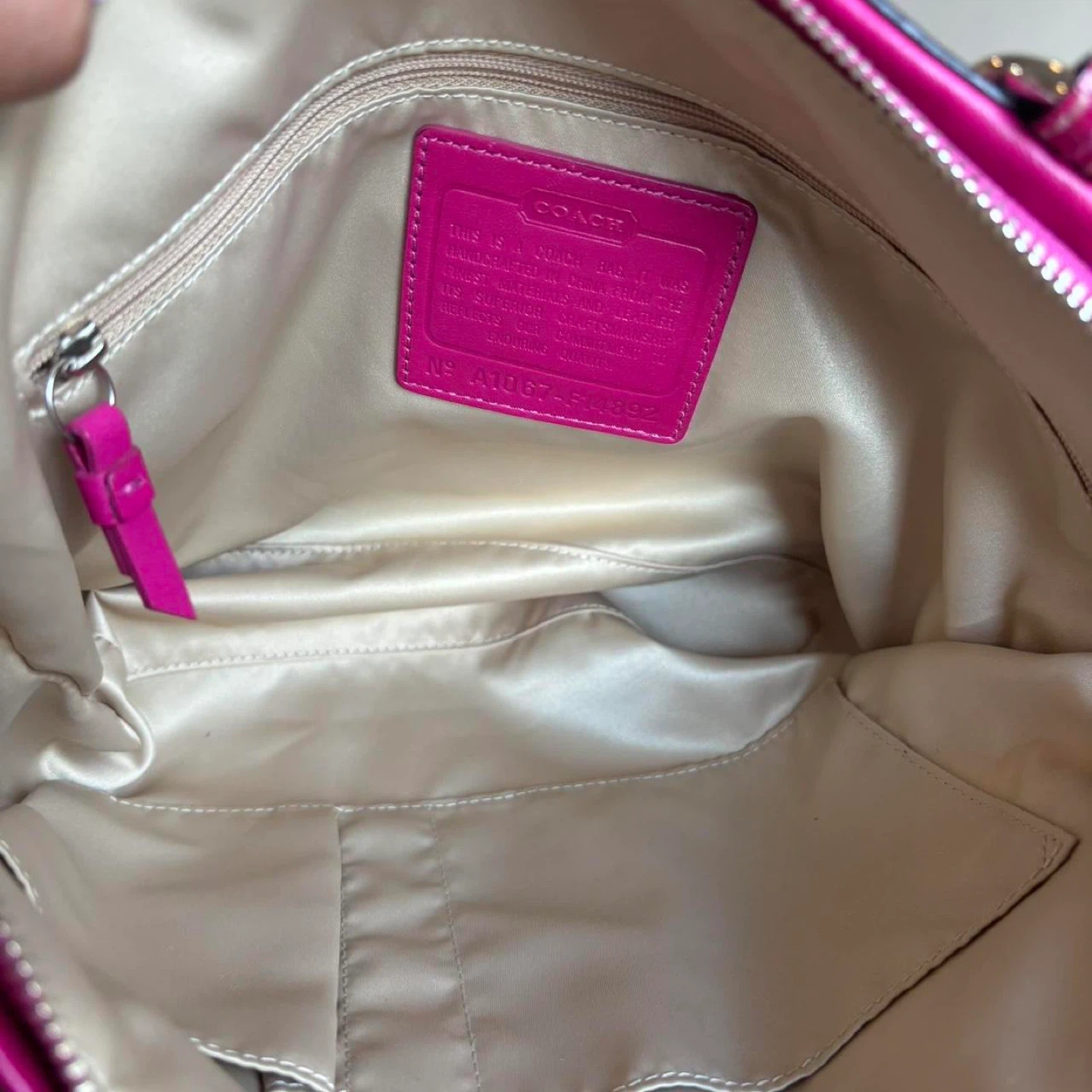 It is crafted from coated canvas with leather trim. Beautiful Pink color! In amazing condition!!