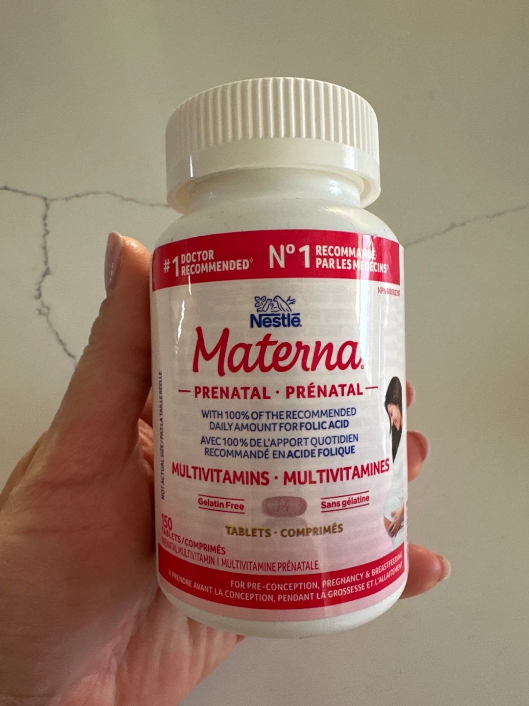 Brand new Nestle Materna prenatal multivitamins come with 100% of the recommended daily amount for folic acid. They are gelatin free and suitable for pre-conception, pregnancy and breastfeeding. Expiration date is 2026.