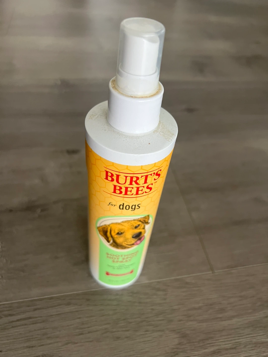 Selling a bottle of Burt's Bees for dogs Soothing Hot Spot Spray! It's made with Apple Cider Vinegar and Aloe Vera. It's 97% natural and pH balanced for dogs, with no colorants and cruelty-free