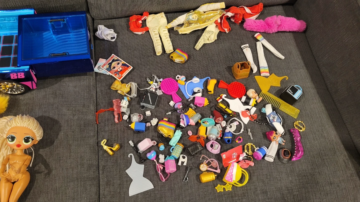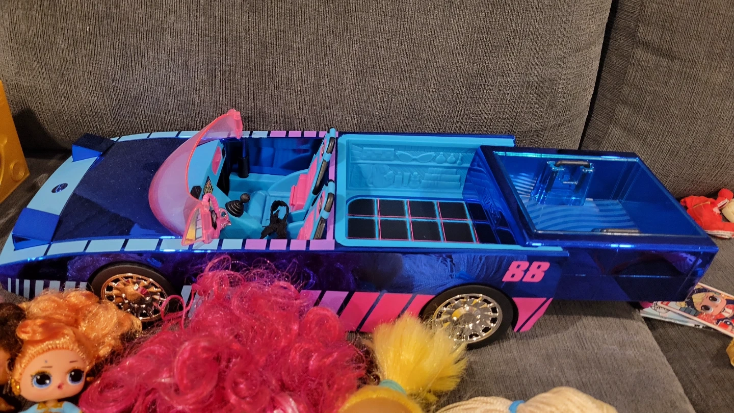 This lot includes multiple LOL Surprise dolls and tons of accessories. Also features a large blue and pink toy car, perfect for playtime adventures! It's a fun collection for any LOL Surprise fan.