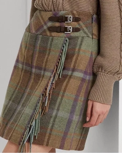Lauren Ralph Lauren Plaid Fringe Mini Skirt Sz 16 W