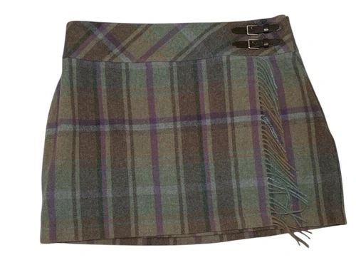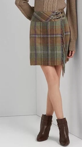 Lauren Ralph Lauren Plaid Fringe Mini Skirt Sz 16 W