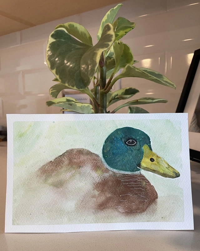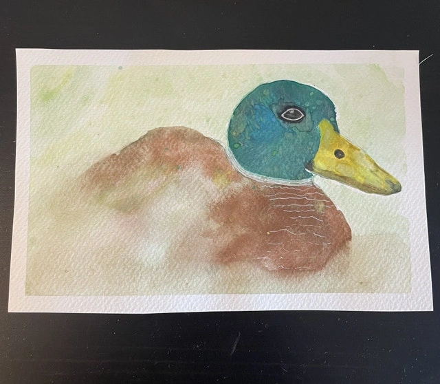 5X7 Watercolor Handsome Mallard painted by me. Can be framed or used as a greeting card or a postcard. Buy 5 of the same size and get 1 free.