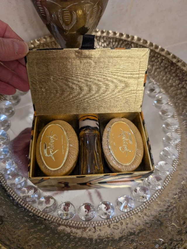 NEW 3 pc Tigress by Faberge gift set. The price here today only $45. This collection is in excellent condition: Foil box with original insert for eau de parfum, embellished with the tiger strips on the packaging. The perfume has never been opened and has the fur bottle lid. The 2 individual soaps are still in their individual wrappers and sticker. The box is in excellent condition, the lid is perfectly intact, no rips or damage. It appears that my grandma just put it away for safe keeping. So if you are a collector, or just someone who loves great parfum, this is for you, at any age. Just imagine receiving this for Easter, or a gift, or for yourself. Pickup area Carlton St and Grantham Avenue. From a very clean smoke-free home. Please see my other ads, thanks so much!
