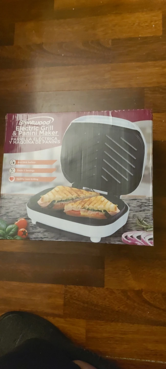 This Brentwood electric grill and panini maker features a non-stick surface. It cooks two servings at once and supports healthy lean grilling. It's great for quick lunches or snacks!