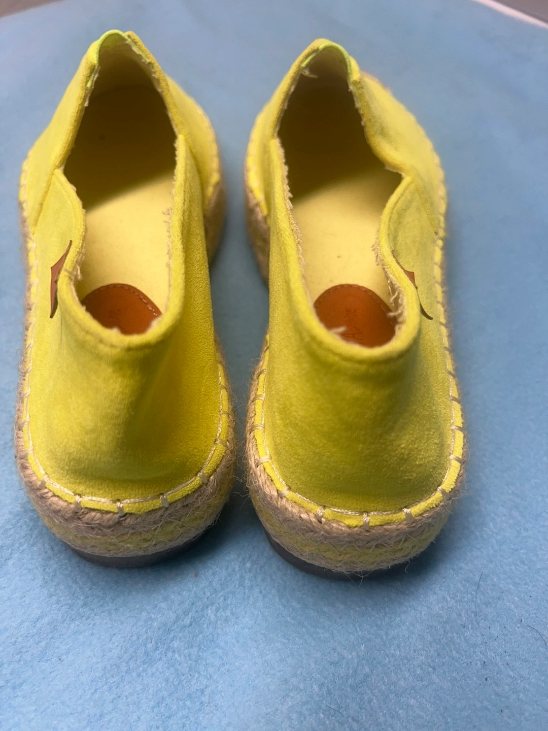 Pair of bright yellow espadrille slip-on shoes. Lightweight and comfortable. Great for summer.