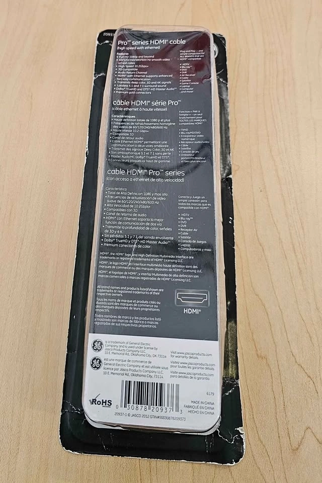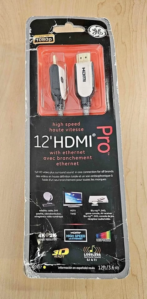 New in package GE Pro Series HDMI cable. 12 ft long. High speed with ethernet. Supports 4K and 1080p resolutions, 3D ready, and lossless surround sound. Good for all your devices. Package is a bit beat up but the cable is brand new never used. Pick up from smoke free home in McKenzie Lake Douglasdale area in SE Calgary.