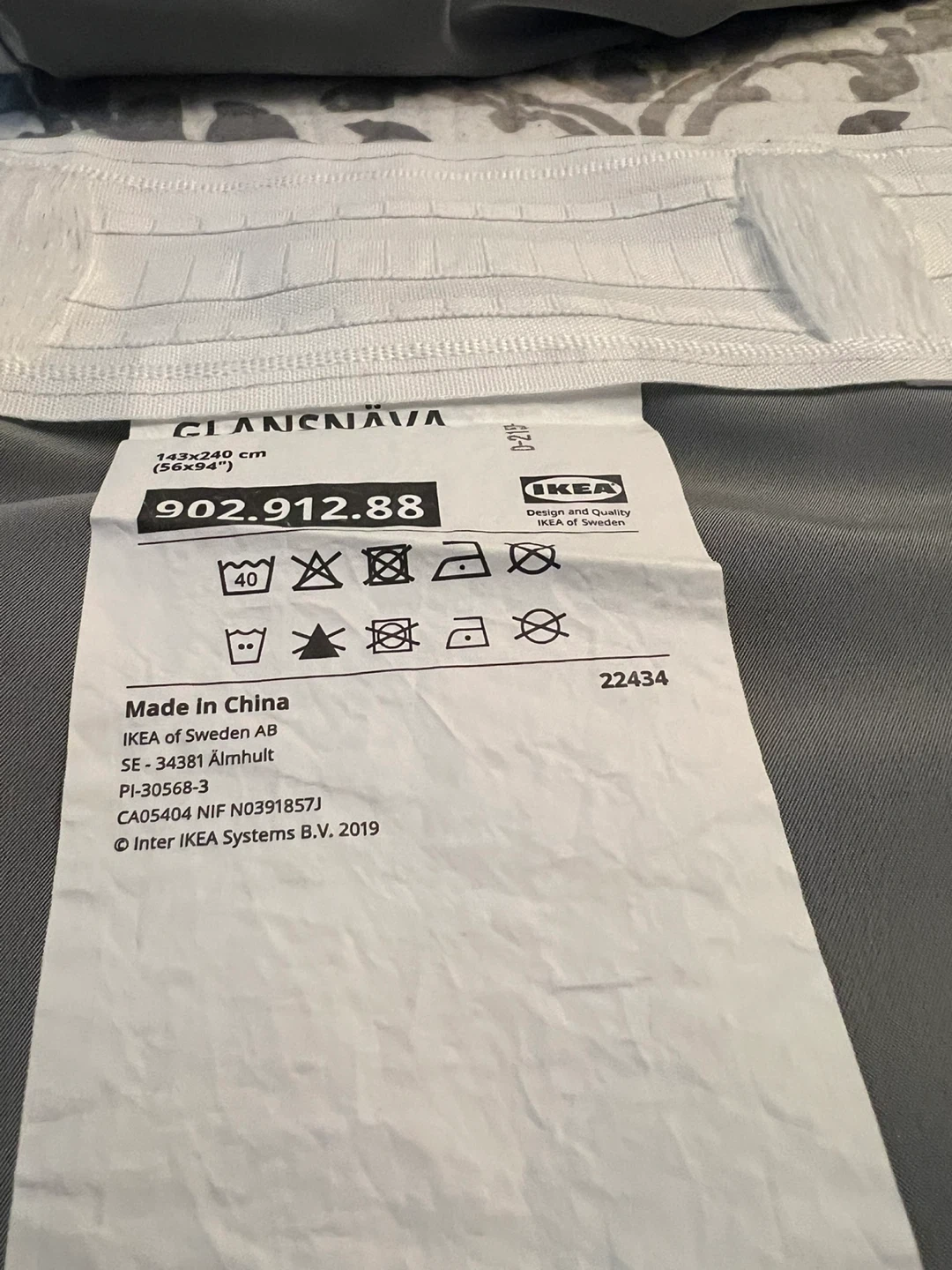 These IKEA GLANSNÄVA curtains come in a neutral grey colour. They're made of 100% polyester. Semi-blackout. Machine washable at 40°C. Each curtain measures 143x250 cm. Like new condition.