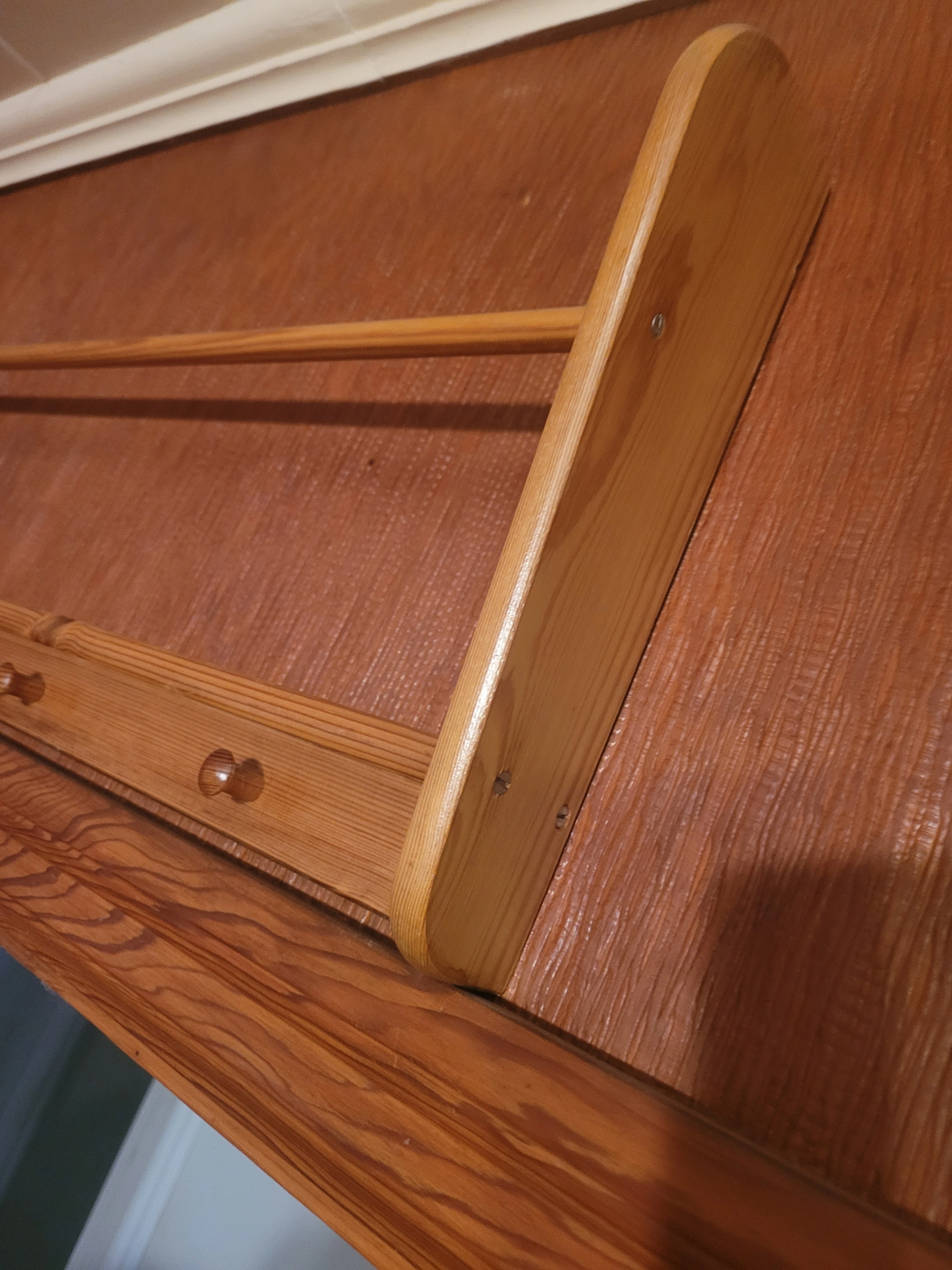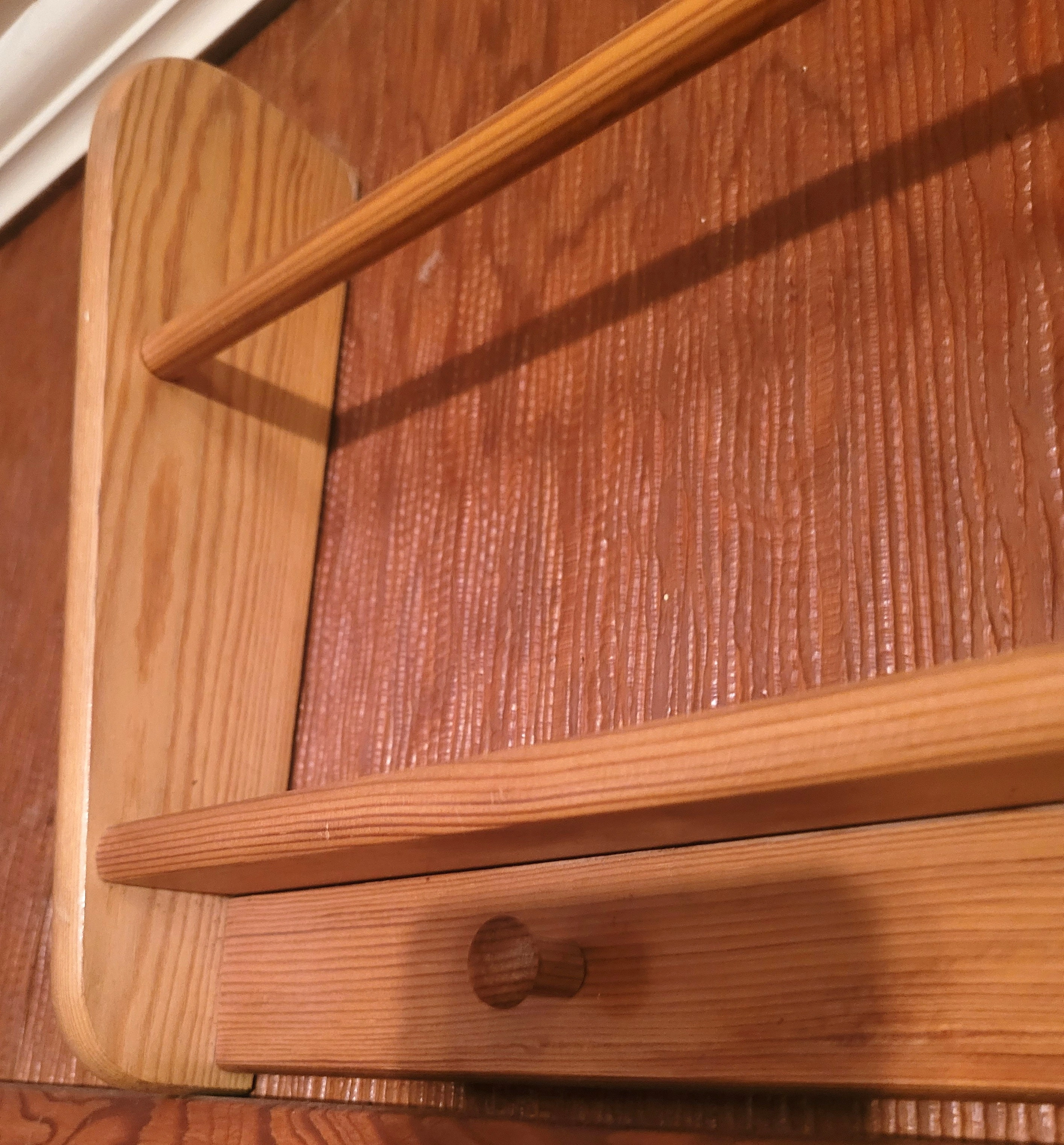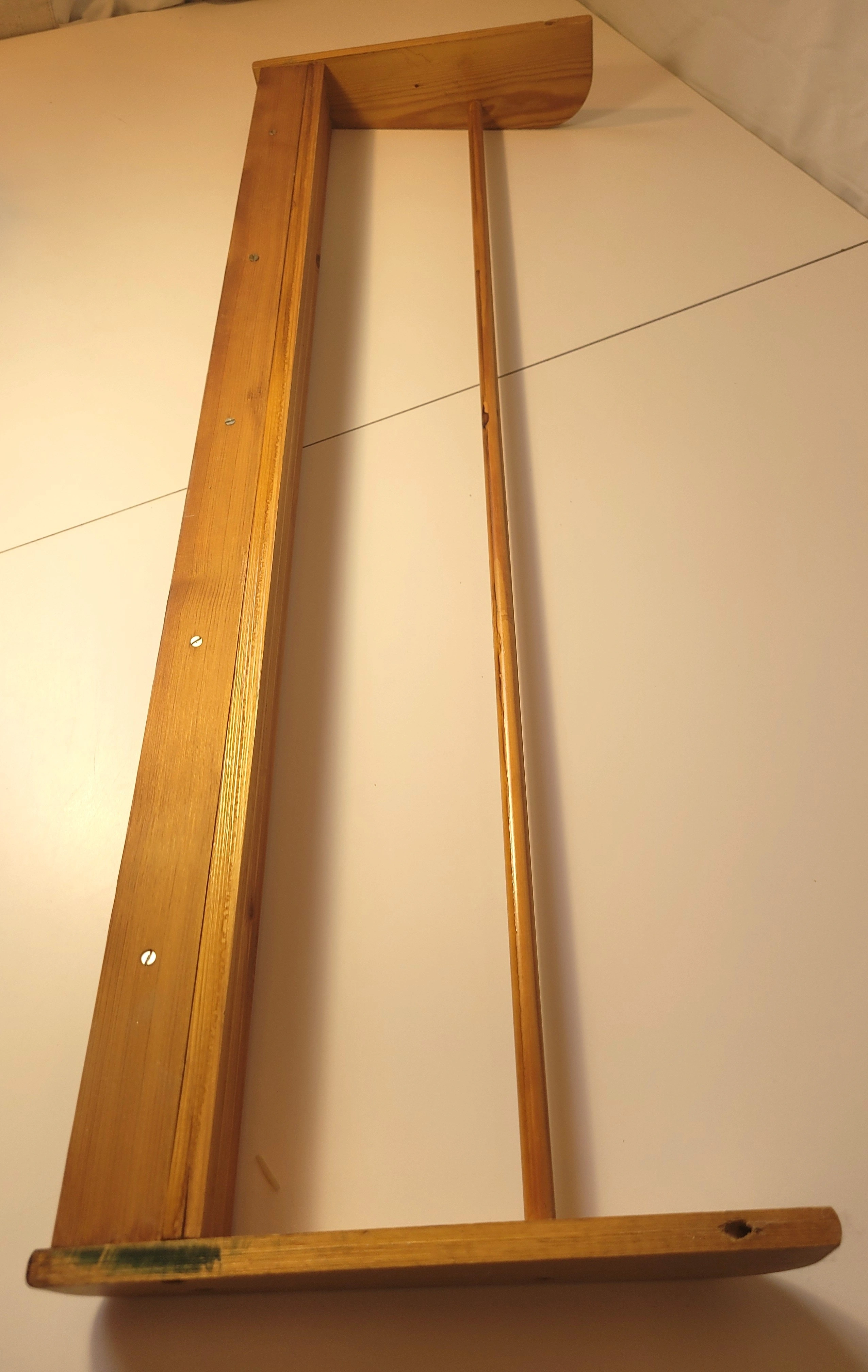 Excellent Vintage Condition. The pine wood has a beautiful, warm honey-toned patina and remains structurally sound with no cracks or warping. There is minor surface wear consistent with a piece from the 1970s, which only adds to its authentic rustic character. Cleaned, conditioned, and ready to be displayed.