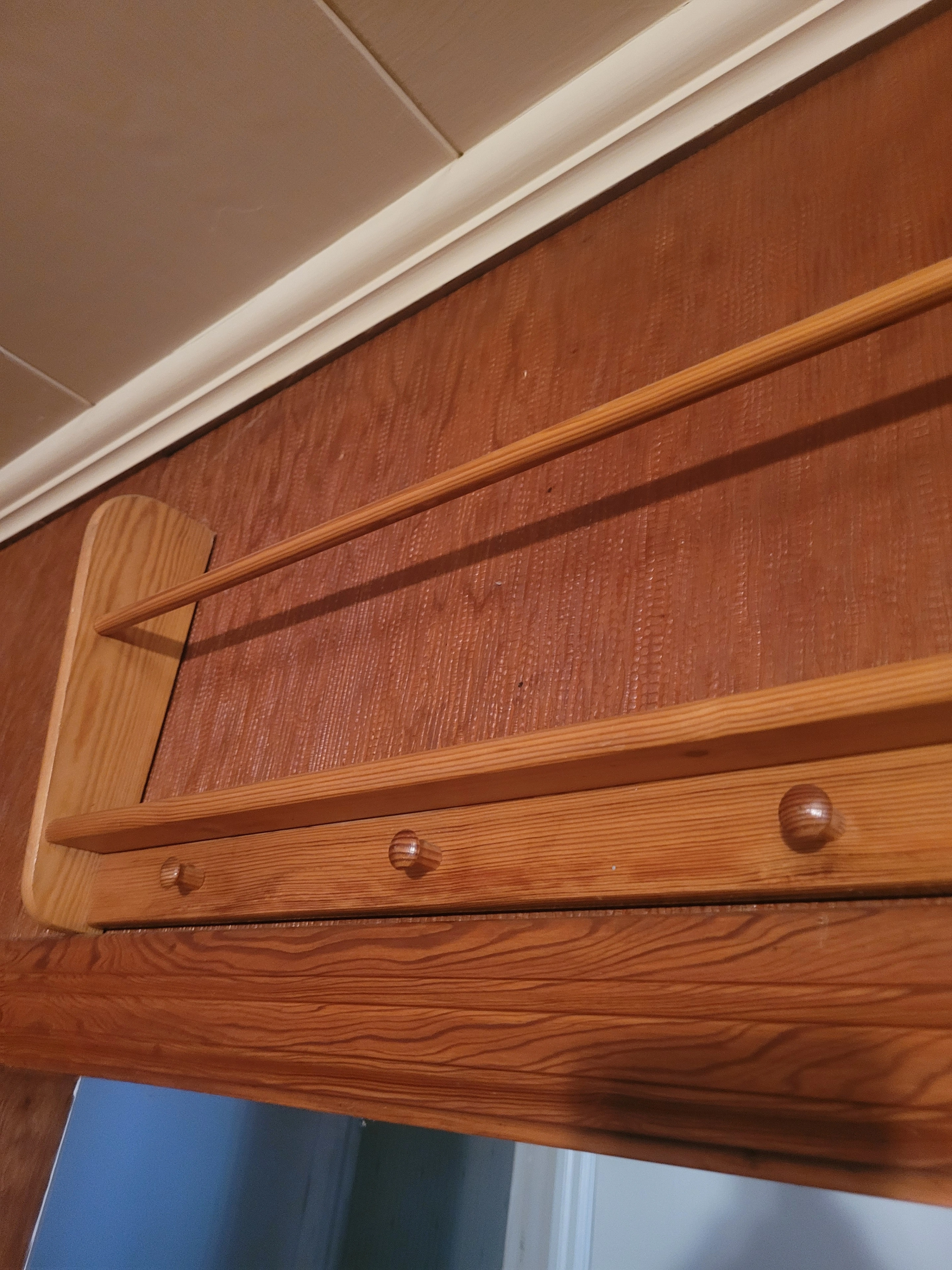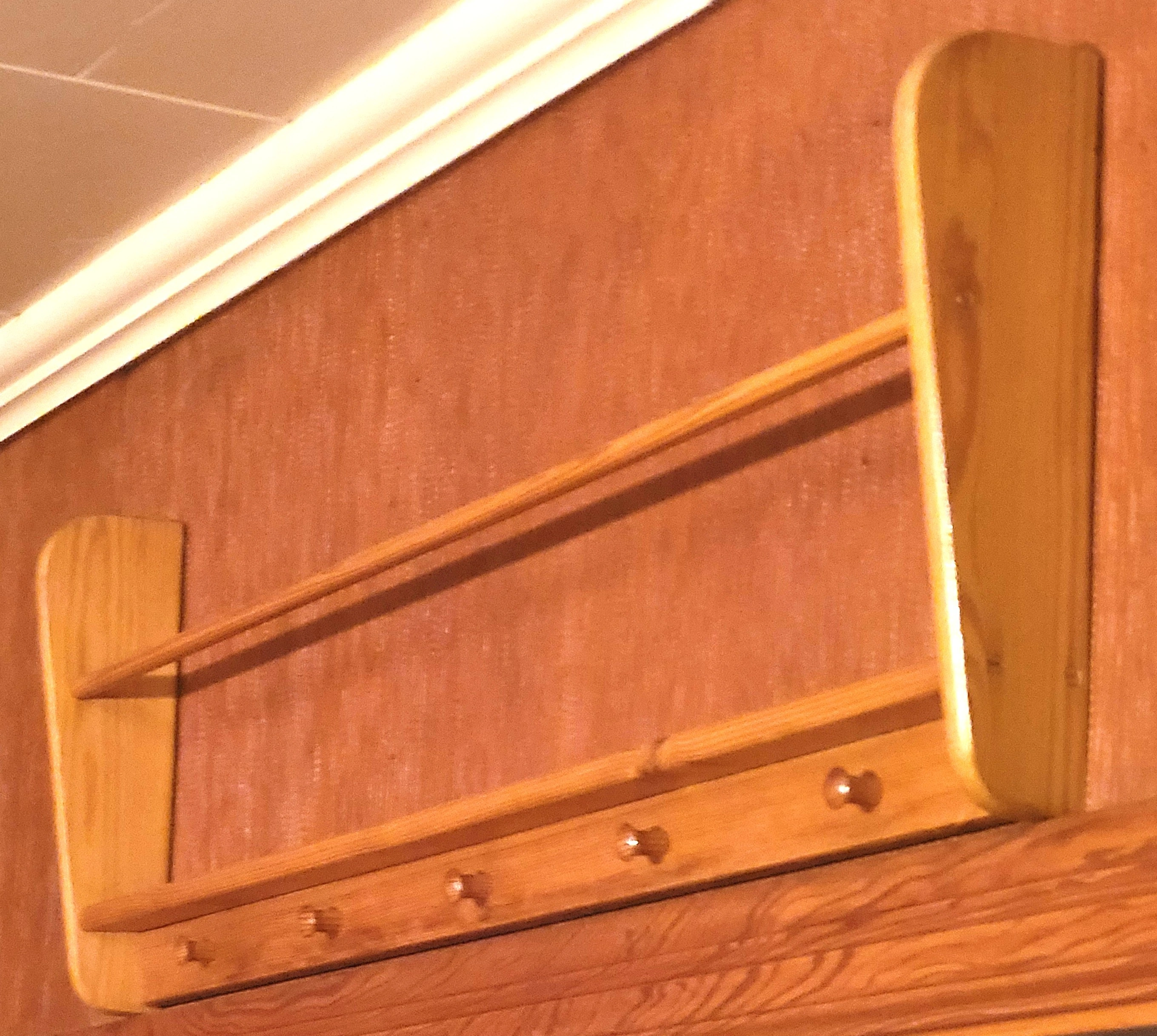 Large 34” Solid Pine Wall Plate Rack Circa 70s Farmhouse Shelf