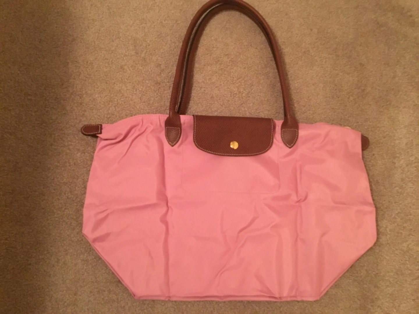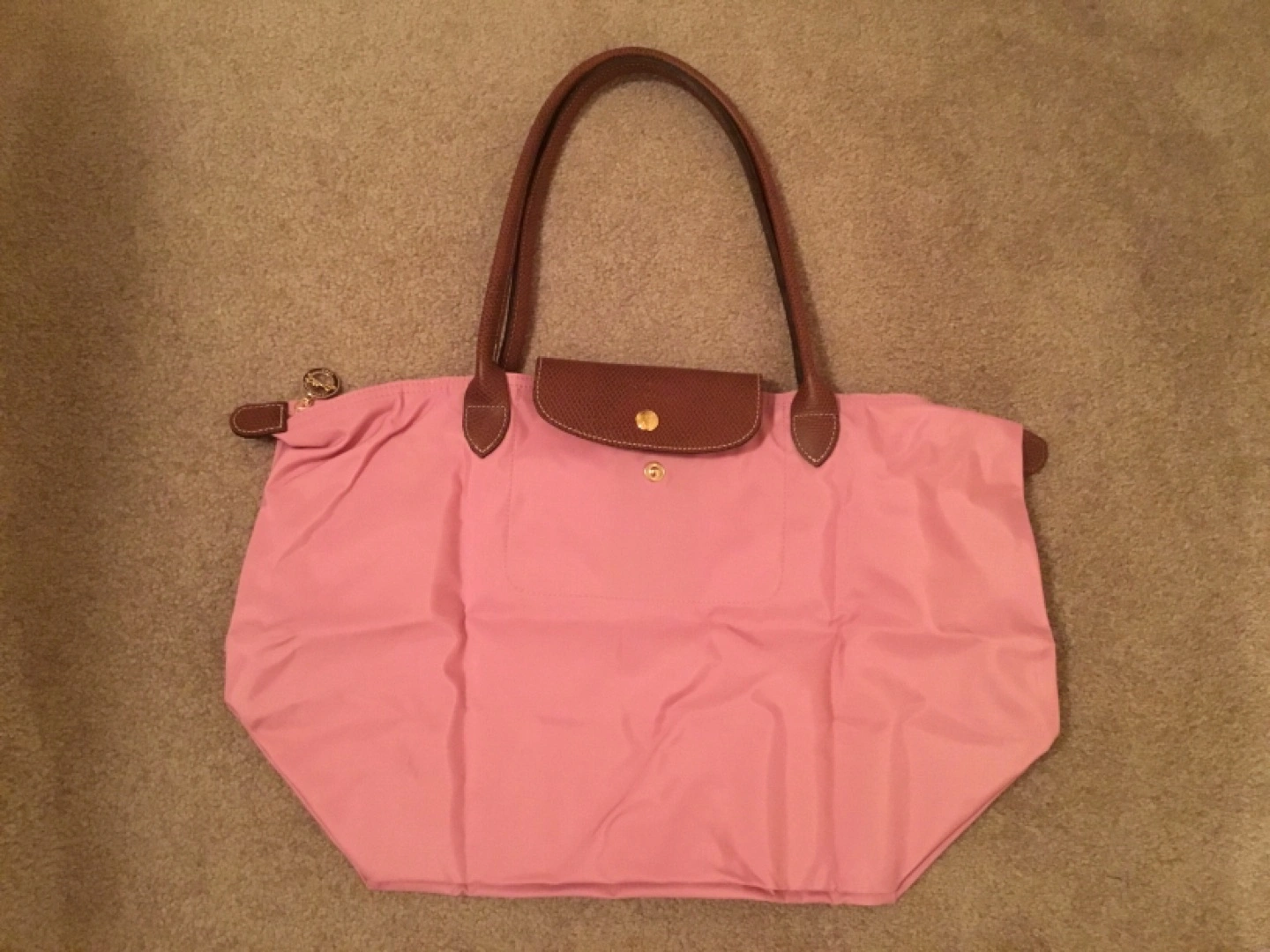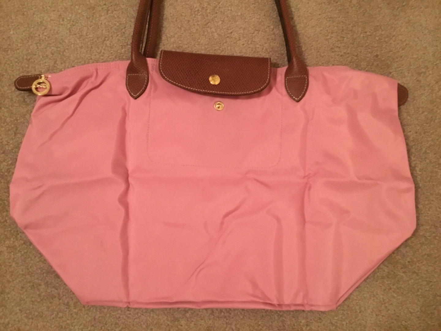 Longchamp Large Le Pliage Original Canvas Shoulder Bag with leather trim, snap, zipper closure