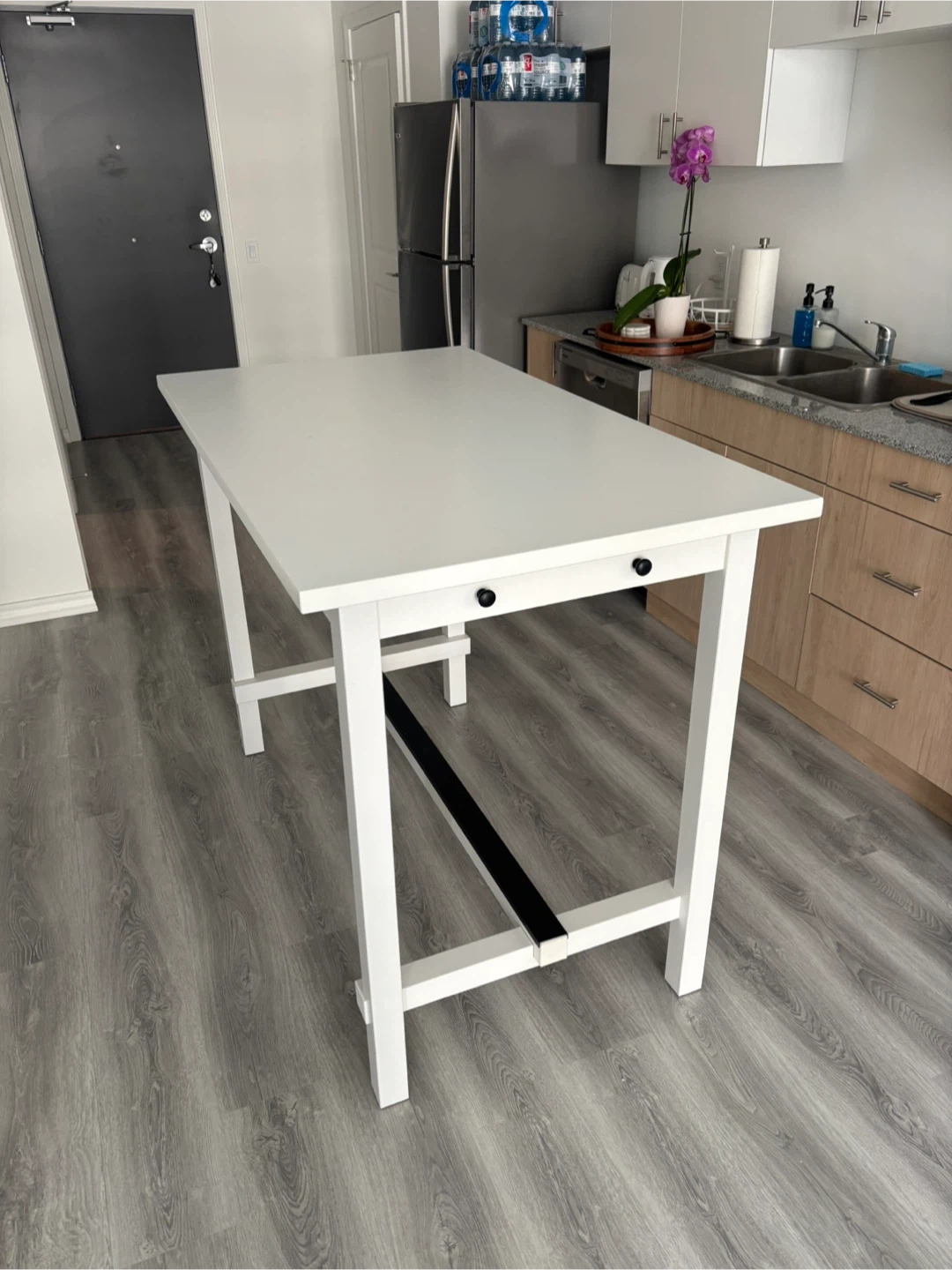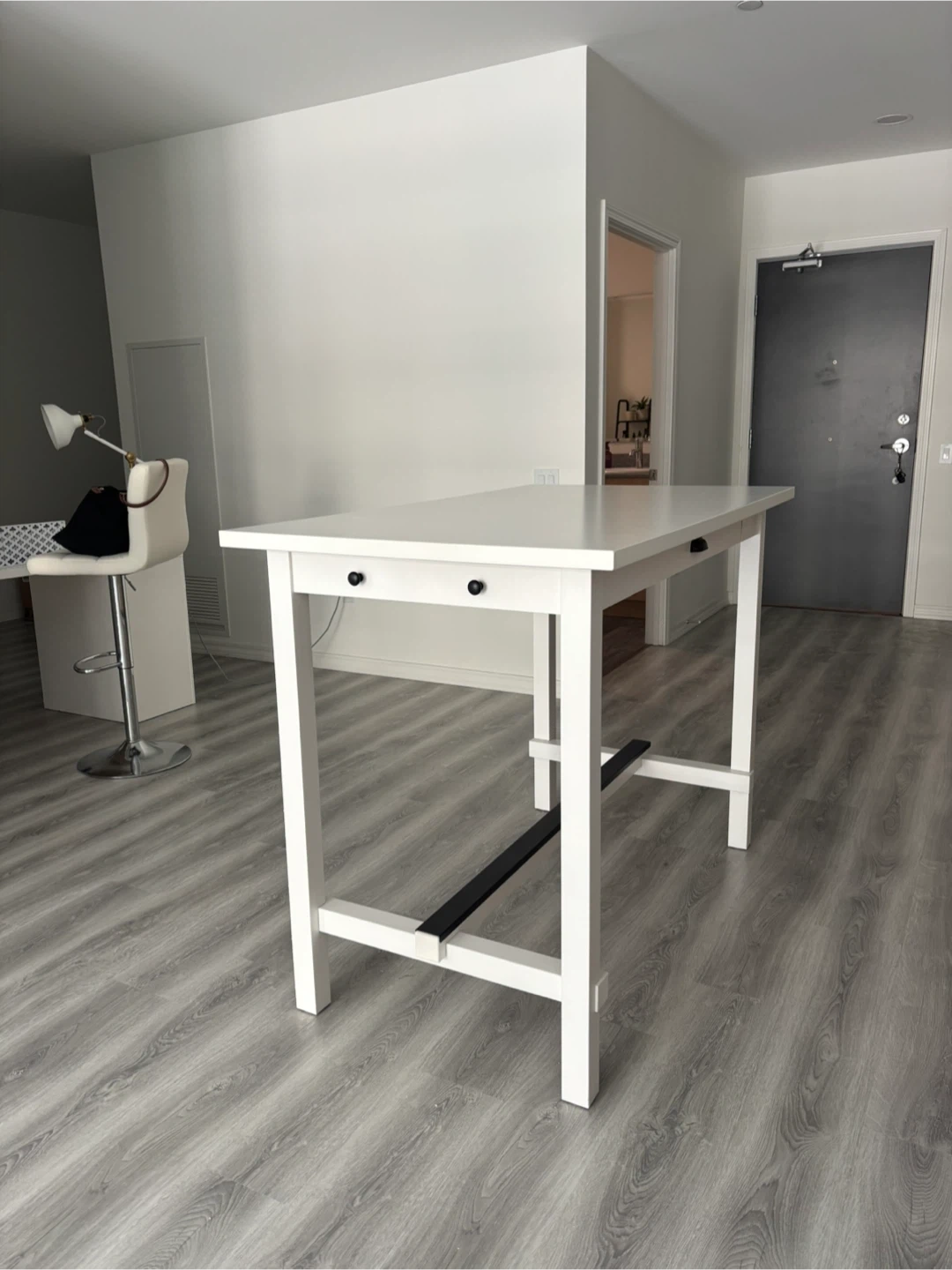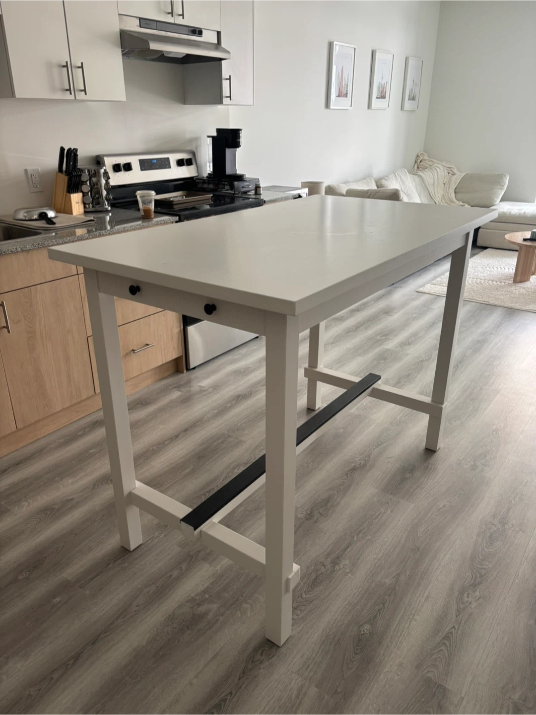 White counter height table.