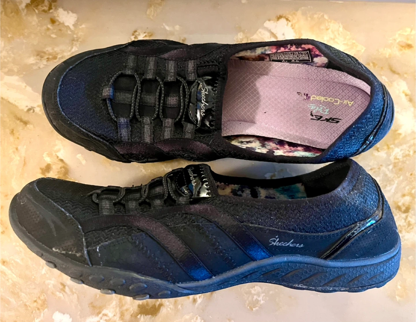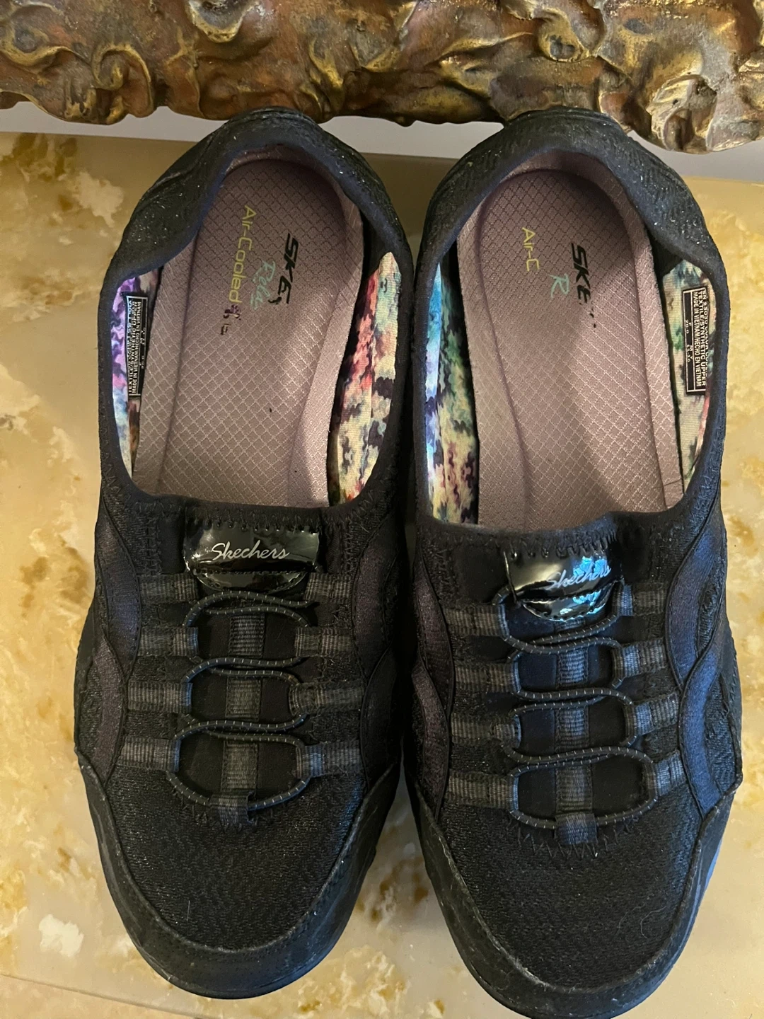 Selling a pair of Skechers Relaxed Fit shoes in black. They are a women's size 8. The shoes feature an air-cooled design for extra comfort. Perfect for everyday wear!