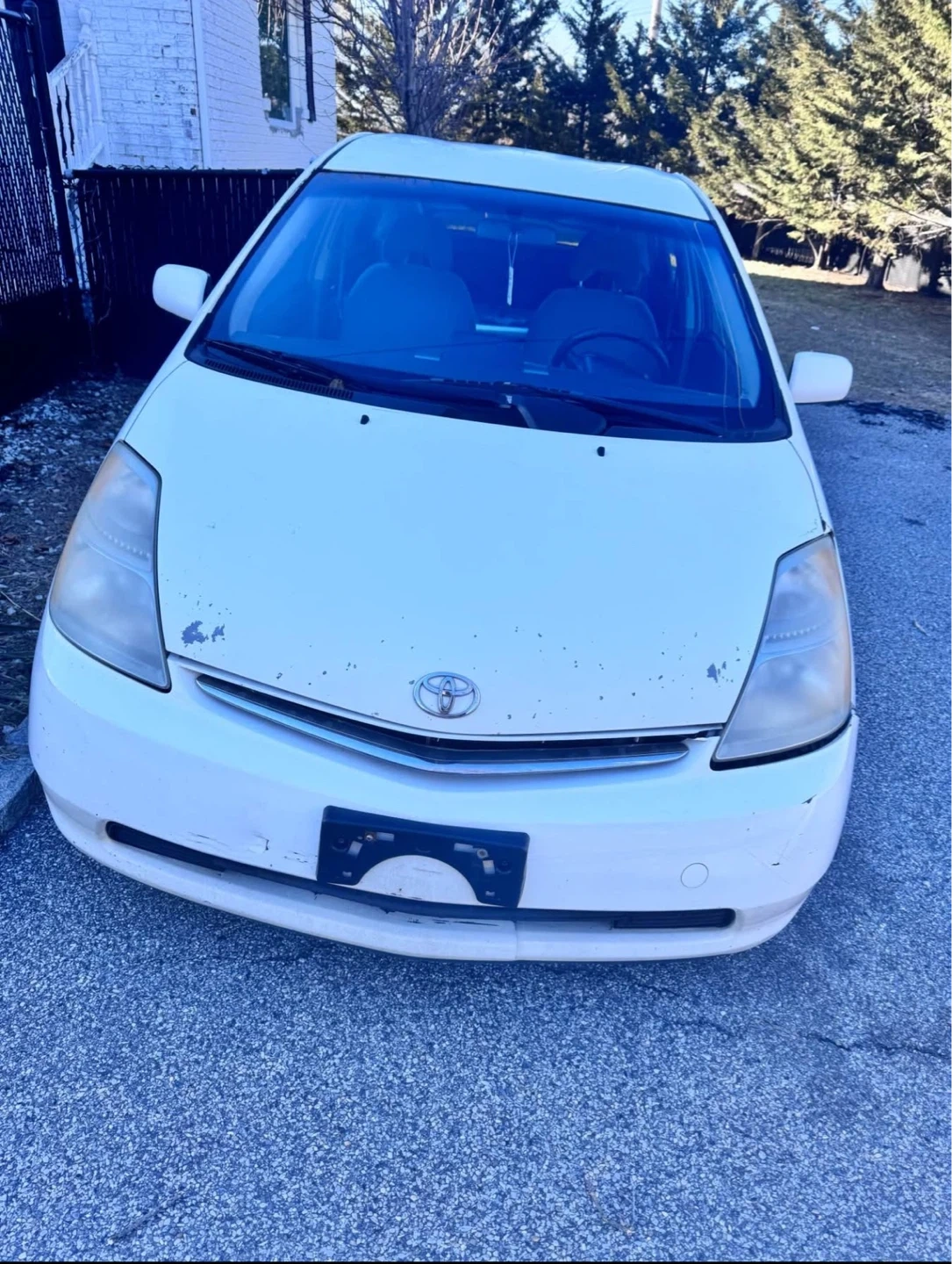 White Toyota Prius. Hybrid vehicle. Features a four-cylinder engine and electric motor. Seats five passengers. This is a 2008 white Toyota Prius Hybrid. 96500k mileage. It's a used vehicle. It has a hybrid engine. The car is a sedan body style. No engine light. Transmission very good condition. Hybrid battery as well. Clean title. Serious buyers only.