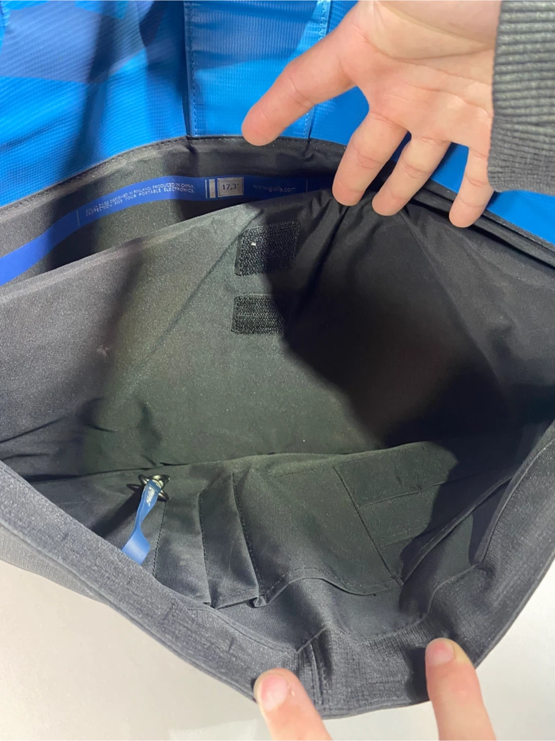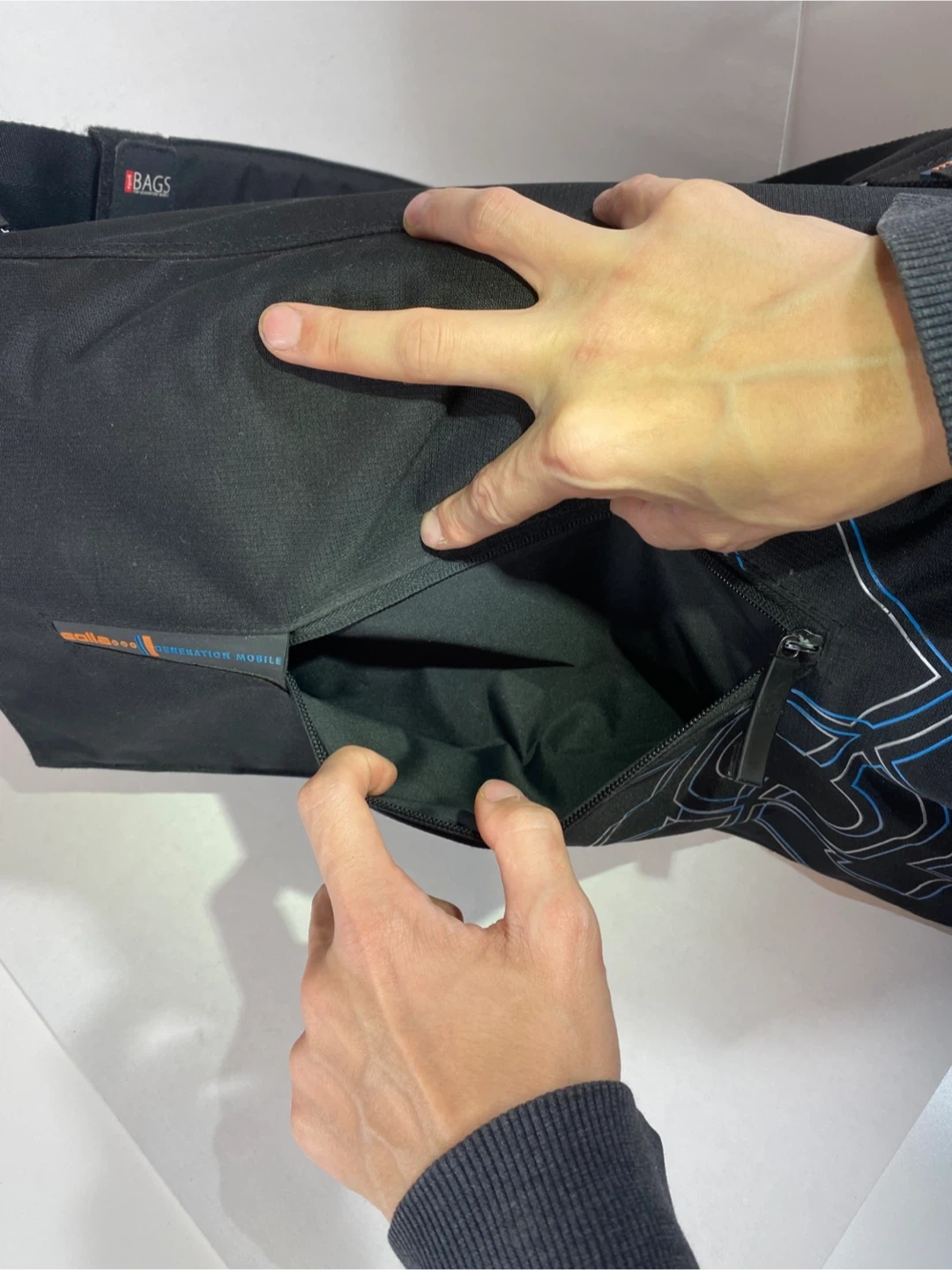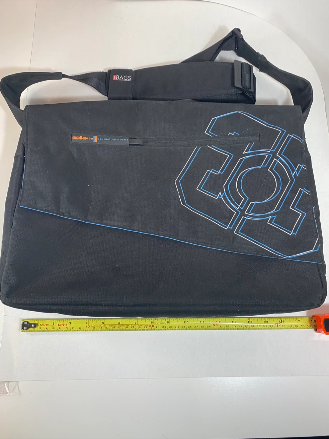 This black Gollla Generation Mobile messenger bag is designed for portable electronics. It features a main compartment and a zippered front pocket. The bag is designed to fit up to a 17.3" laptop.