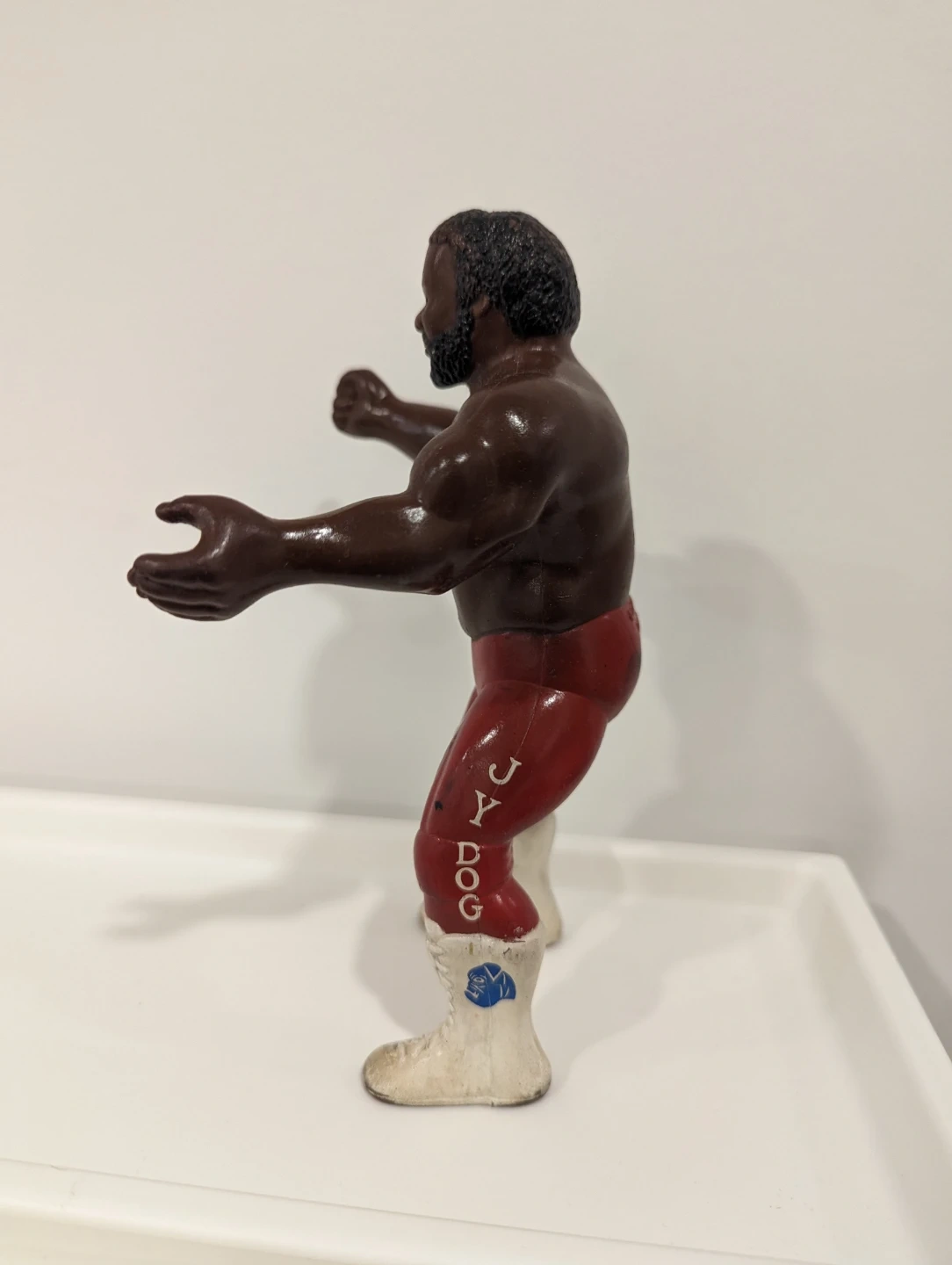Selling a vintage Junkyard Dog wrestling figure. It shows some signs of wear, but it's still a great piece for any wrestling fan!