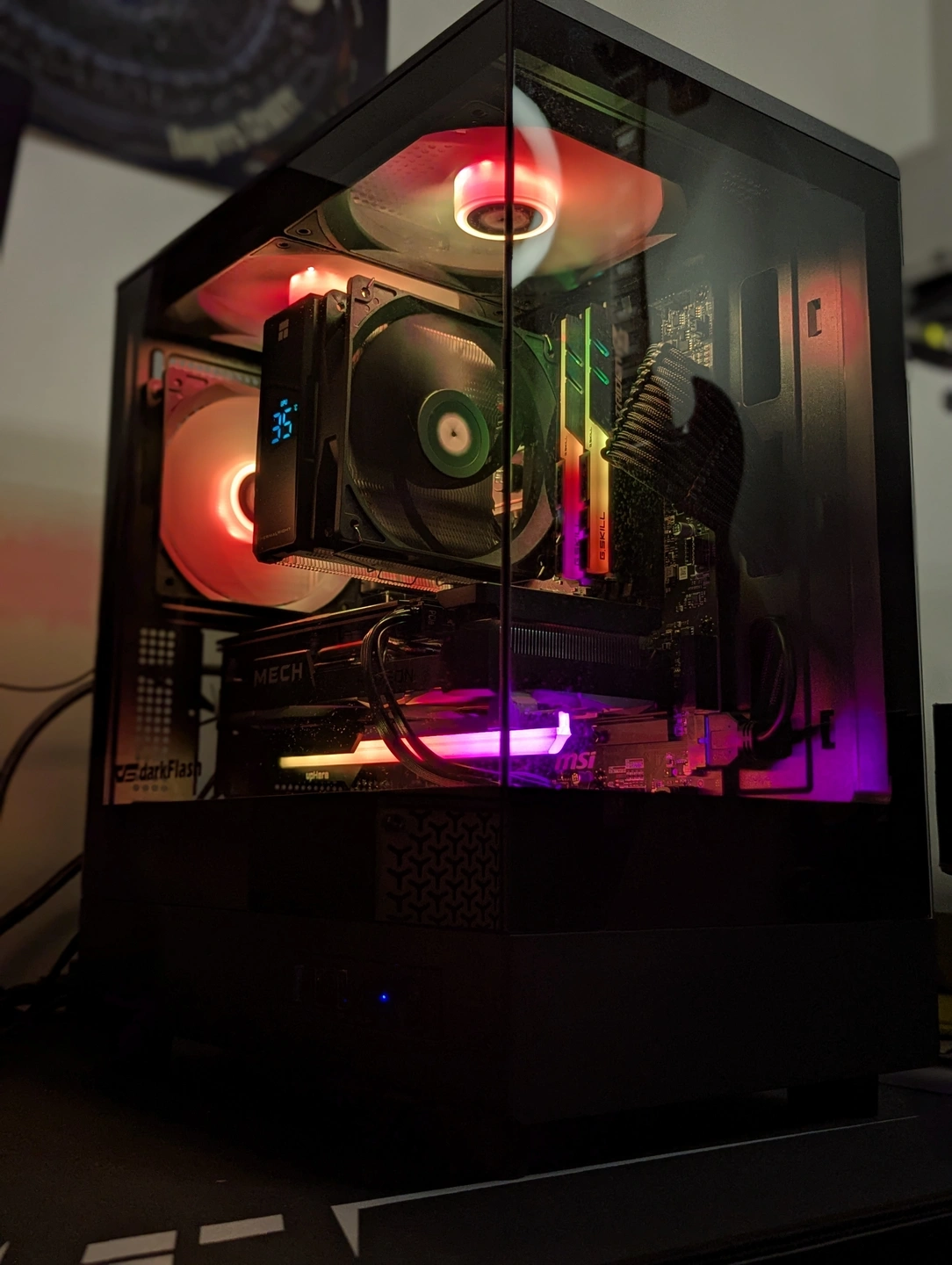 Freshly built custom MSI 1080/1440p gaming PC. Compact and in a beautiful black, fishtank-style case, perfect for work and gaming. Handles multiple applications smoothly and quickly with its Ryzen 5 processor and ample 16 GB of RAM, allowing you to effortlessly multitask between applications, spreadsheets, and more. The SSD NVMe ensures fast boot times and quick access to your files. Can easily play AAA games at high settings at 1080p. Delivers stunning visuals and lag-free performance for the ultimate gaming and productivity! Part List:⬇️⬇️ ✔️Motherboard: MSI B550M PRO-VDH Wifi (NEW) ✔️GPU: MSI Mech AMD Radeon RX6600xt 8GB ✔️CPU: AMD Ryzen 5 5600x 6 Cores 12 Threads 4.6ghz ✔️RAM: 16gb 3600mhz G.Skill Trident ARGB (8x2) (NEW) ✔️Storage SSD: Kingston 512 GB Gen4 NVMe (NEW) ✔️PSU: Corsair CX650m semi modular 80+ Bronze (NEW) ✔️Case: DarkFlash DB330m Fishtank ✔️CPU Cooler: Thermalright Assassin x 120 R Digital ARGB (NEW) ✔️Top Case Fans: x2 140mm Thermalright ARGB (NEW) ✔️Rear Case Fan: Thermalright 120mm ARGB (NEW) ✔️ARGB uphere GPU Bracket (NEW) ✔️24Pin and 8Pin Braided Cable ✔️Windows 11 Pro $990 OBO Games Tags: Marvel Rivals CS2 Dota 2 monster hunter NFS NBA2k valorant Steam