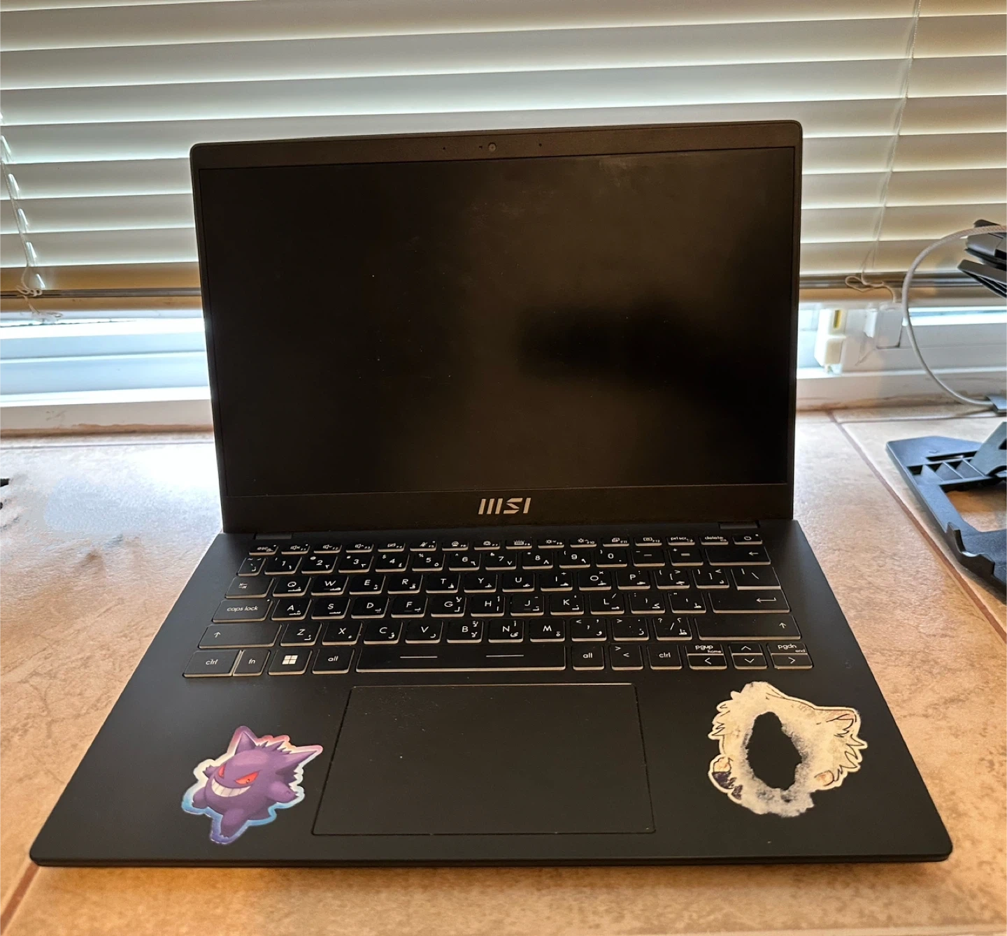 60Selling my daughter’s MSI Modern 14 laptop - i3 8GB RAM and 256GB SSD. Purchased from Dubai in Dec 2023. It comes with a UK charger. It works perfectly fine but she put some stickers on it. She only used it for school and YouTube videos. But now school doesn’t require a laptop.