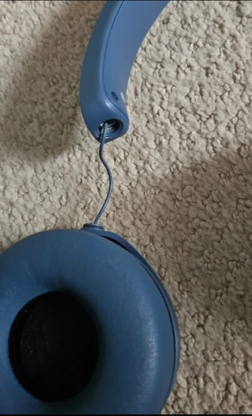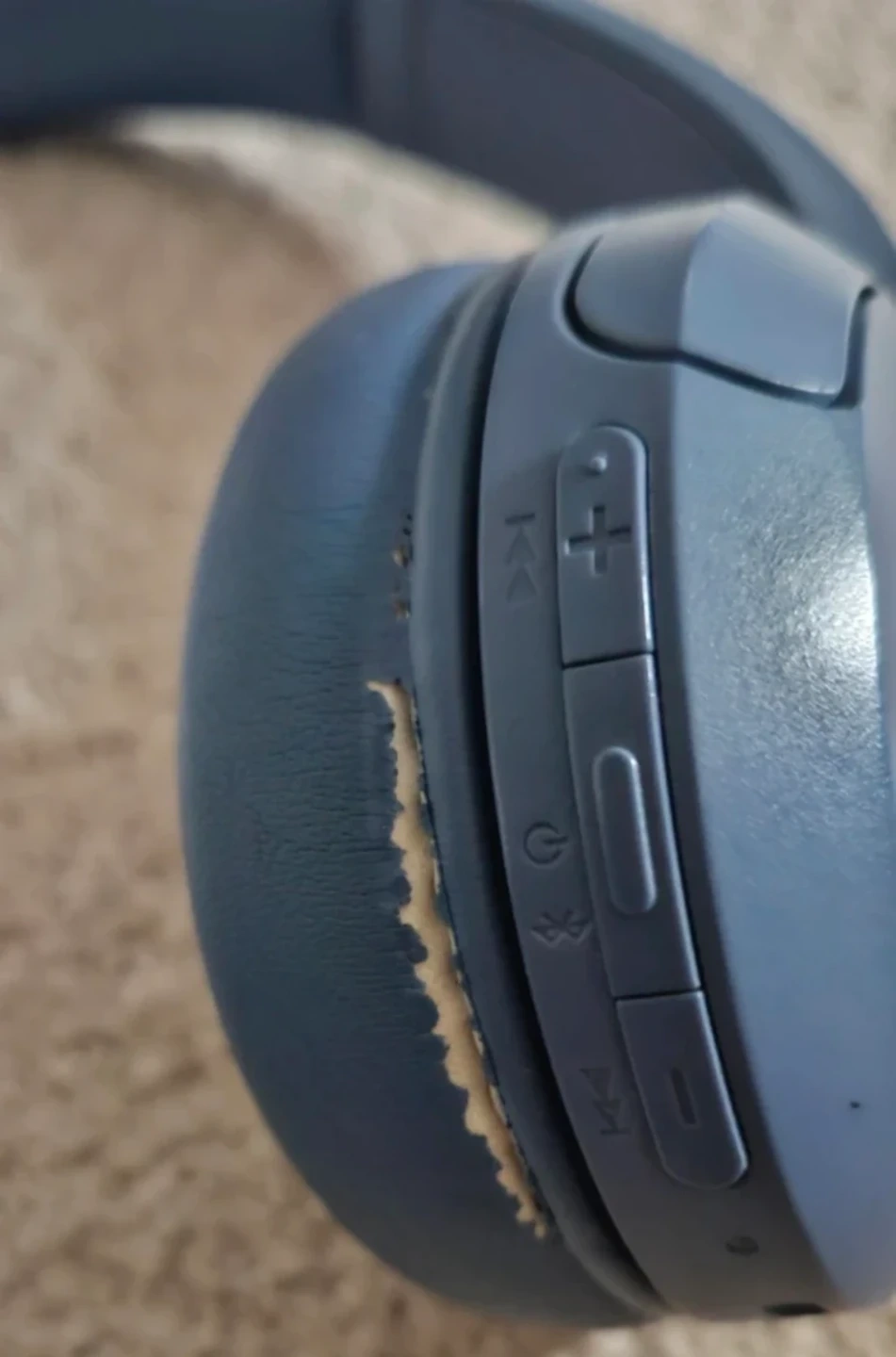 Giving away a pair of blue Sony wireless WH-CH520 headphones still works but the left headphones popped out still attached and the headphones are slightly teared ๐