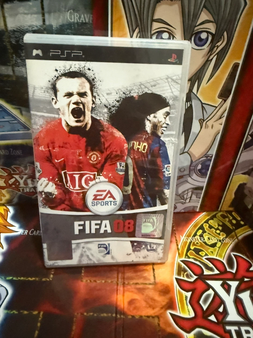 This is EA Sports FIFA 08 for the PSP. It's a soccer game with interactive leagues and online play. Features 3D players and realistic stadiums.