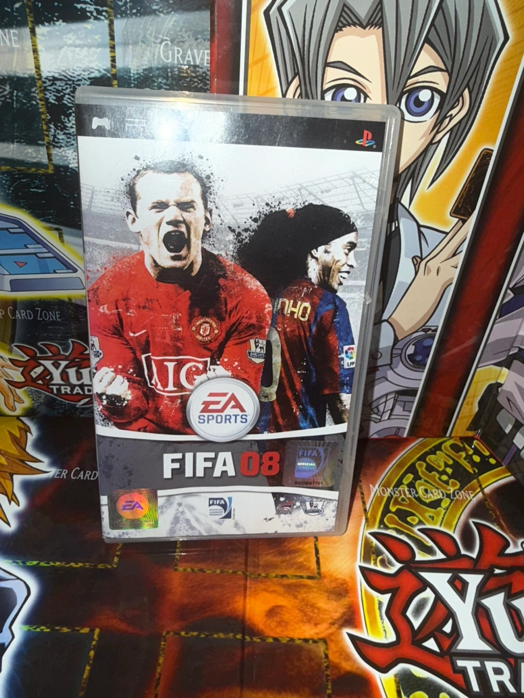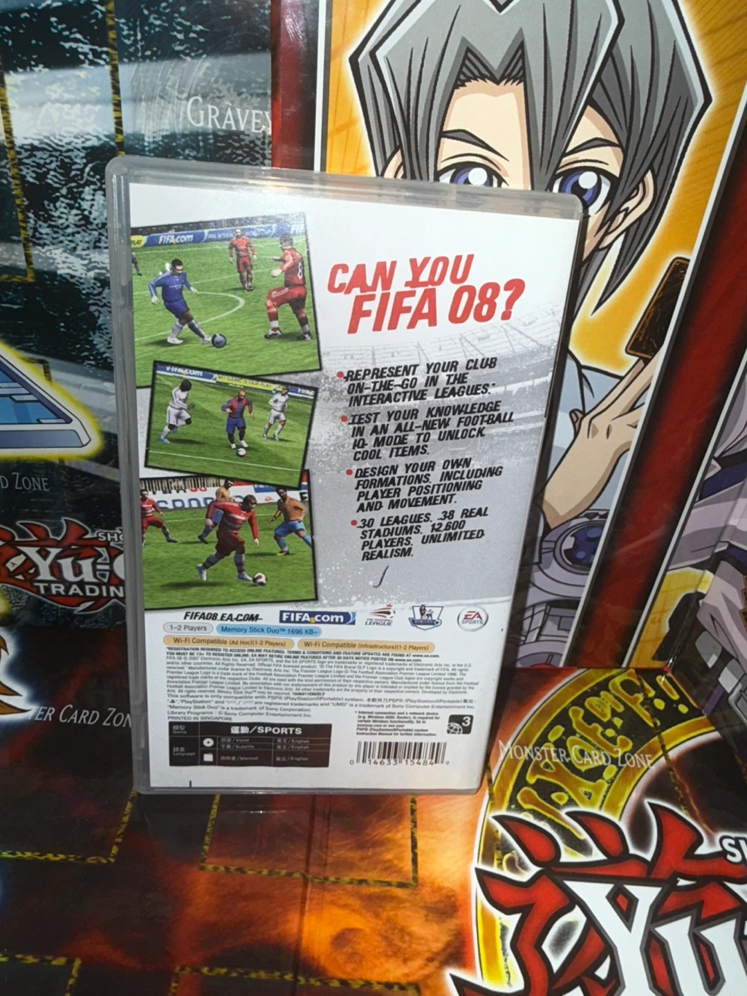 This is EA Sports FIFA 08 for the PSP. It's a soccer game with interactive leagues and online play. Features 3D players and realistic stadiums.