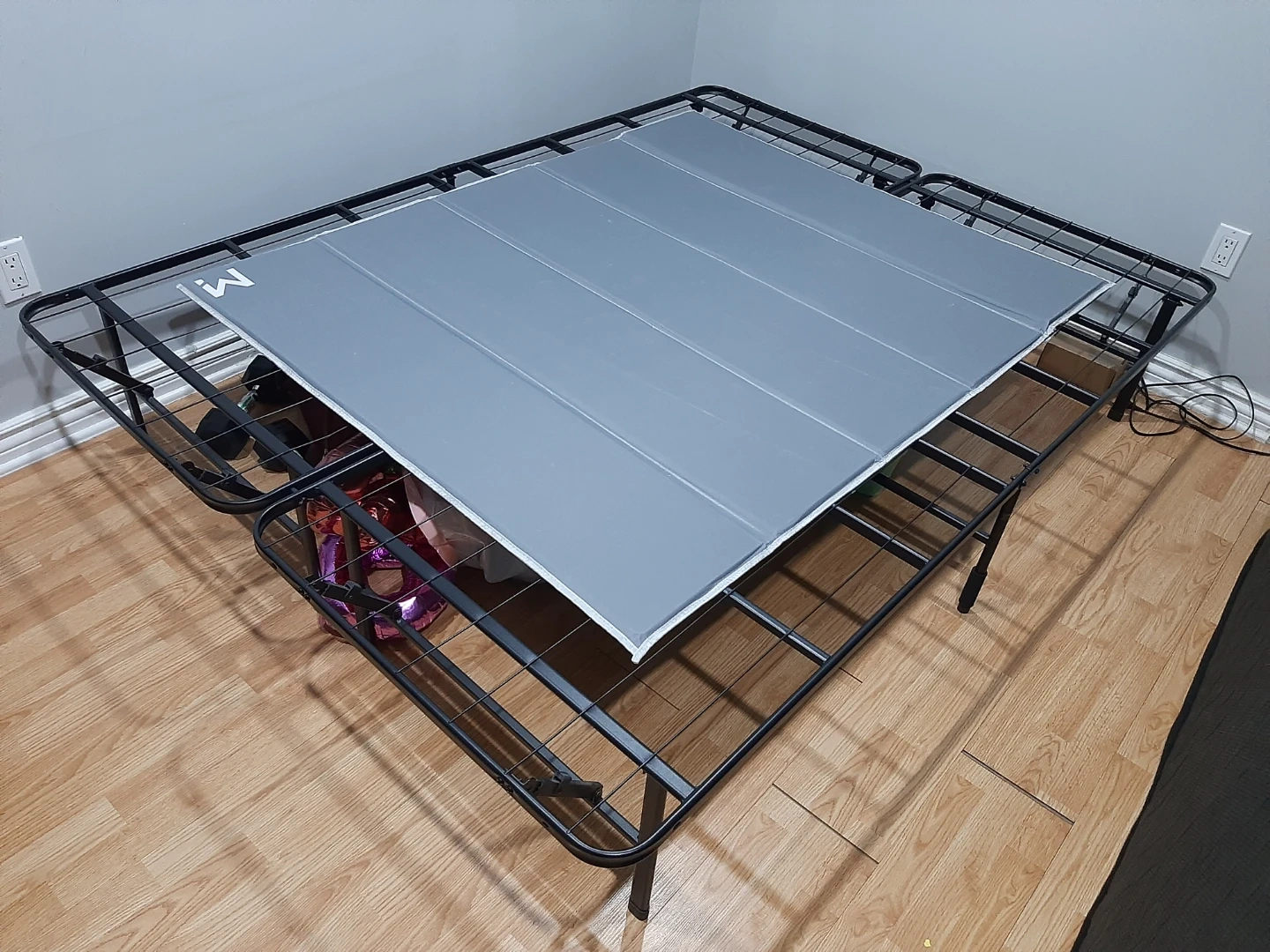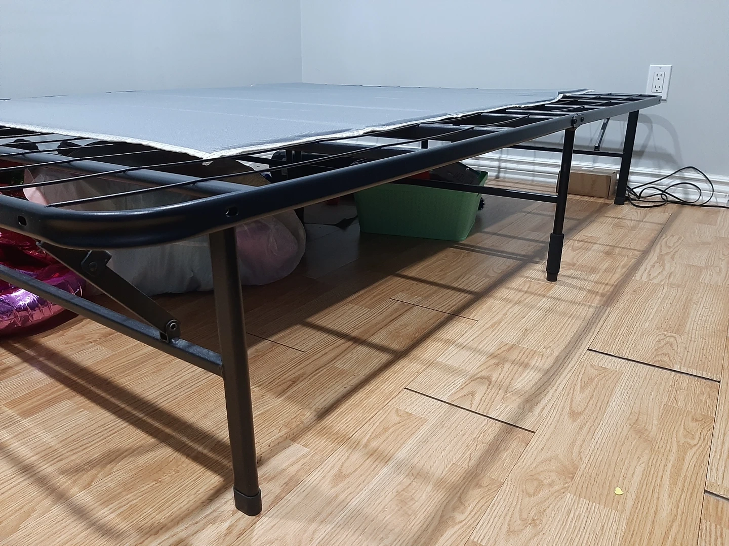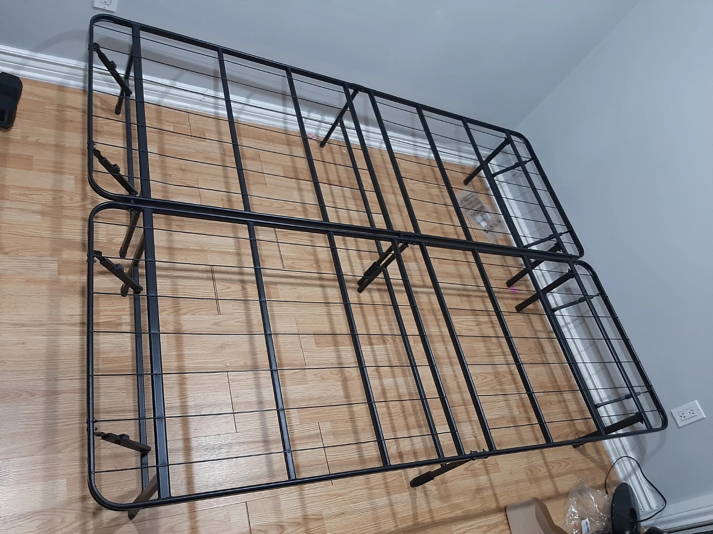 This is a black metal bed frame. It's designed to provide a sturdy base for your mattress.