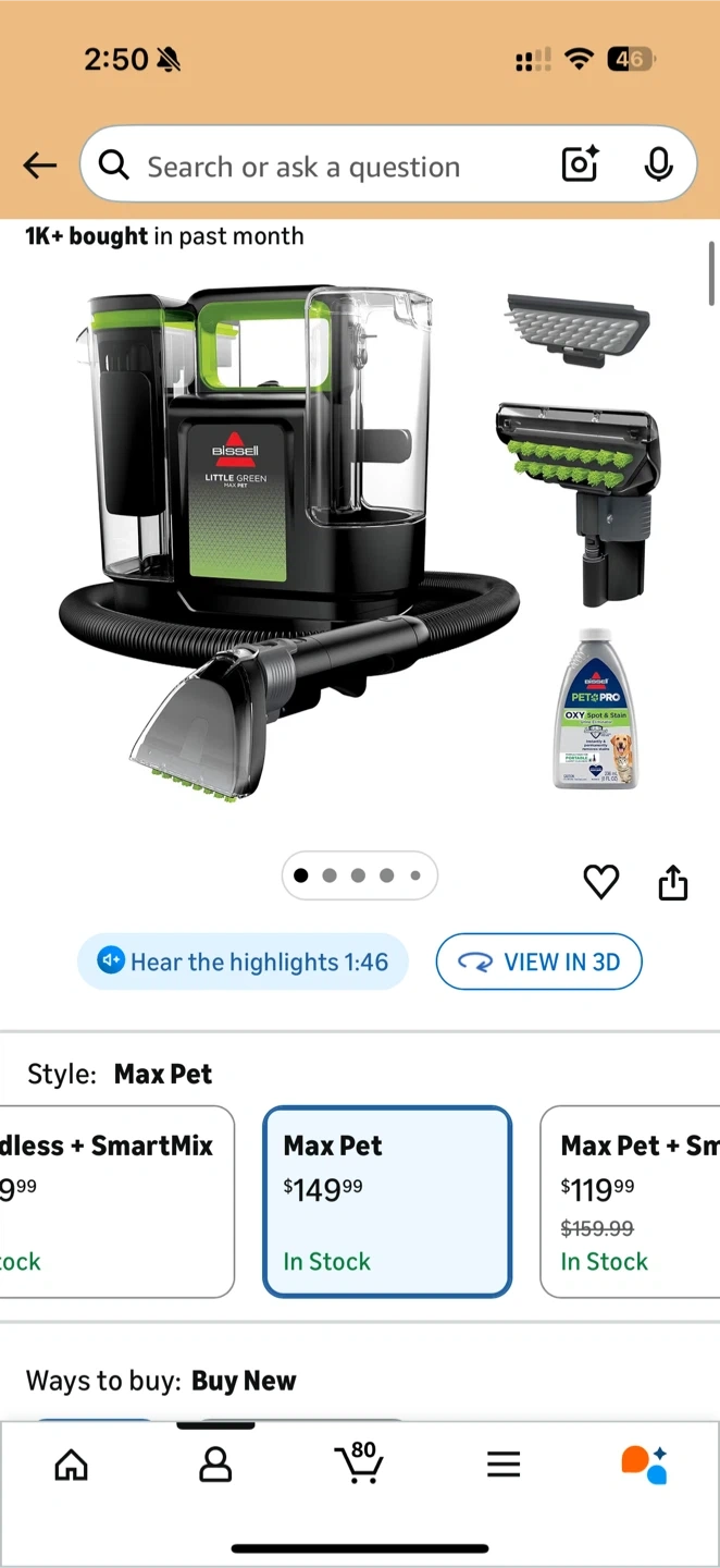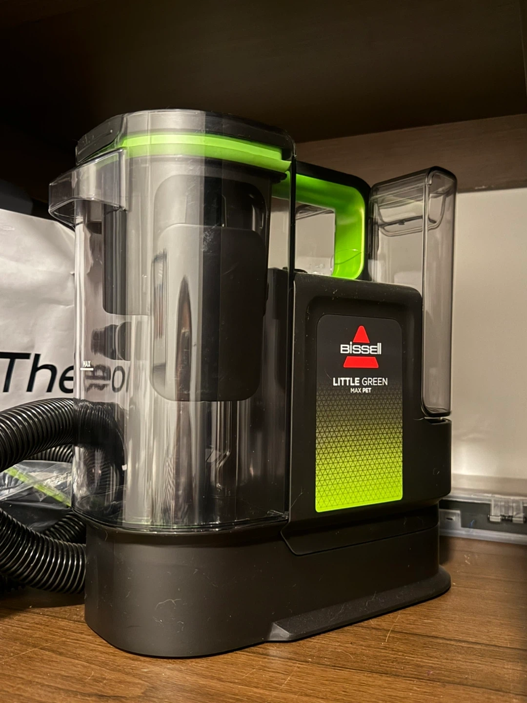 Bissell Little Green portable carpet cleaner for tough pet messes. Comes with a 48 oz bottle of Bissell Pet Pro Oxy Urine Eliminator and a 8 oz bottle of Oxy Spot & Stain. This formula is tough on pet stains and odors!