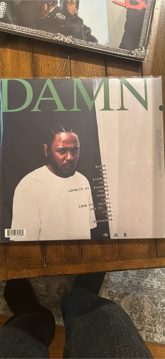 Kendrick Lamar's DAMN. album on vinyl. Includes tracks like 'DNA.' and 'HUMBLE.'. Features contributions from Rihanna and U2. A great addition to any music collection!