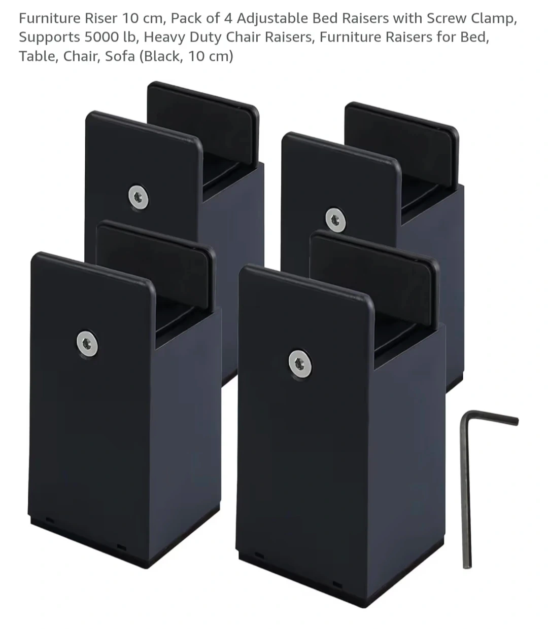Buy & SellBed Risers (Set of 4)Bed Risers (Set of 4)$20Set of four black 4-inch bed risers. Each riser measures 4 inches in height and is 100mm wide.ConditionNewWHERE TO MEETCheck LocationView MapSELLERClarizeS Newton756 reviews0 chats·0 favorites·7 viewsSEND CHAT TO SELLERHi Clarize! I’m interested in your listing.Hi Clarize! I’m interested in your listing.Get the Karrot app to chatSign In to chat