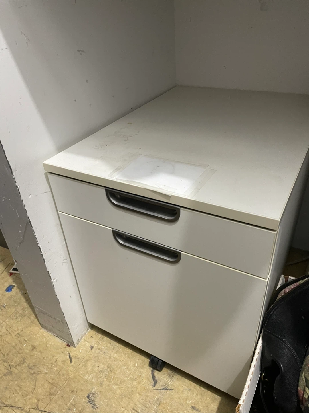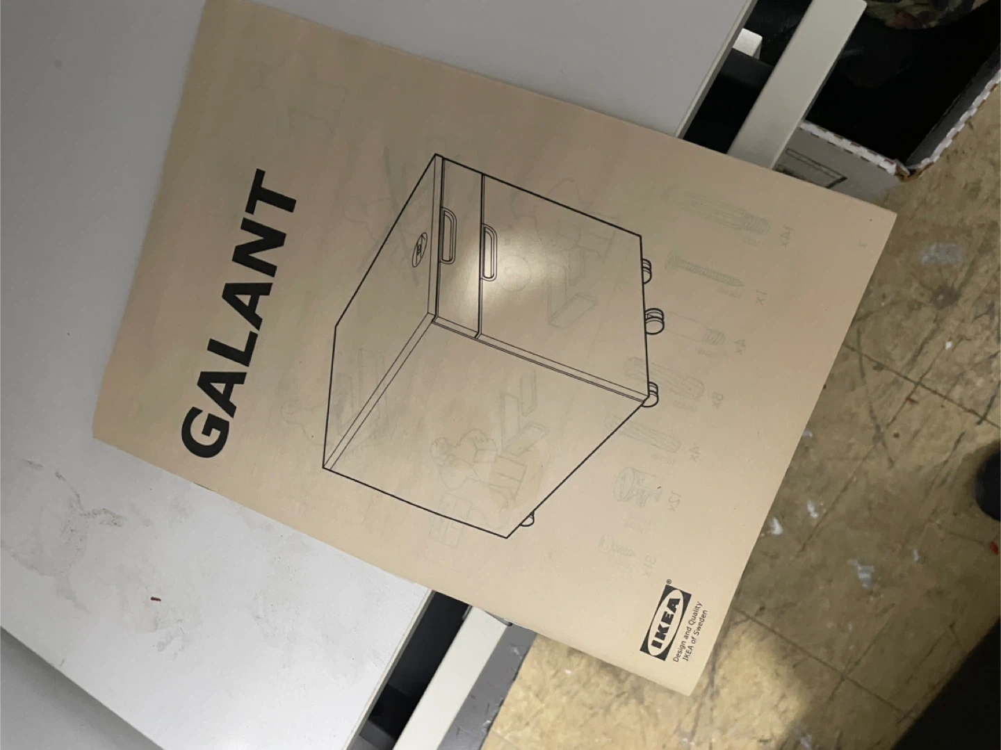 This is an IKEA GALANT file cabinet with two drawers. It's a white, rolling cabinet designed for storage. It comes with the original assembly manual.
