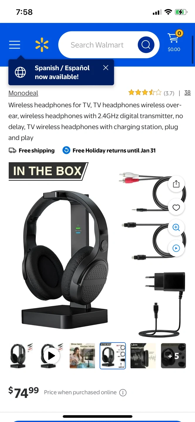 Selling a headphone only of Monodeal wireless headphones for TV use. It’s not comes with a charging station.The headphones feature an adjustable foam band and soft durable padding for comfortable wear. Originally purchased online for $74.99.