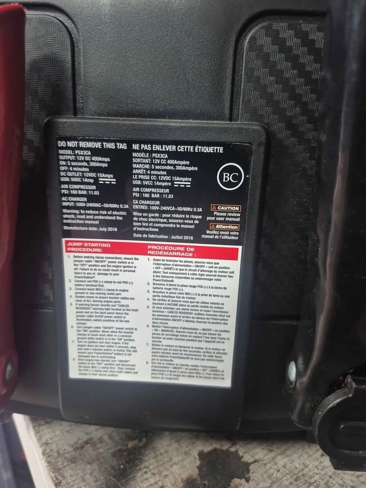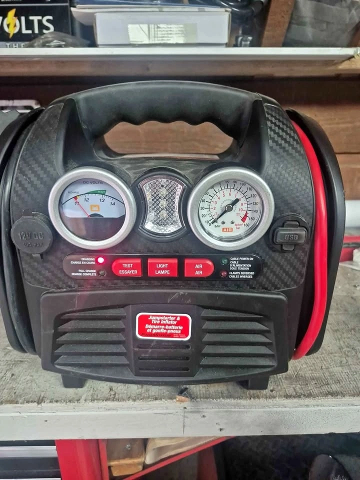 Heavy-duty PSX3CA 12V Jumpstarter & Tire Inflator in excellent condition, recently upgraded with a brand new 28Ah sealed lead-acid battery (original came with 18Ah).