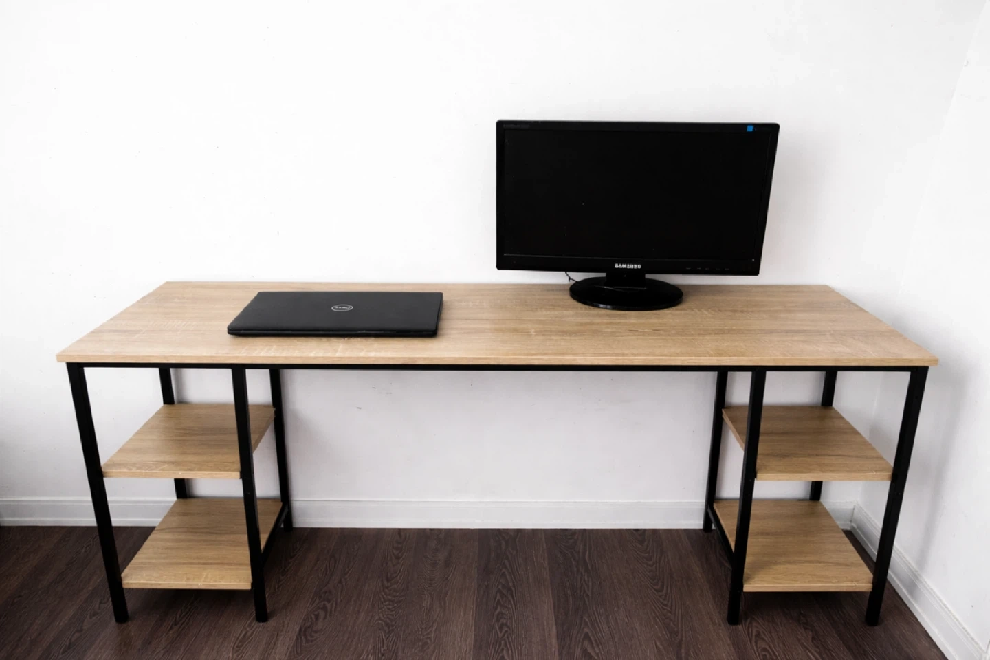 This 59.5” L-shaped desk includes two built-in shelving units for storage. It’s a smoke and pet free environment. Will be disassembled. The L shape part is already disassembled. You can use it like an L shape or just one side like I have if you don’t have space, no scratches and used for only 8 months. Pickup only.