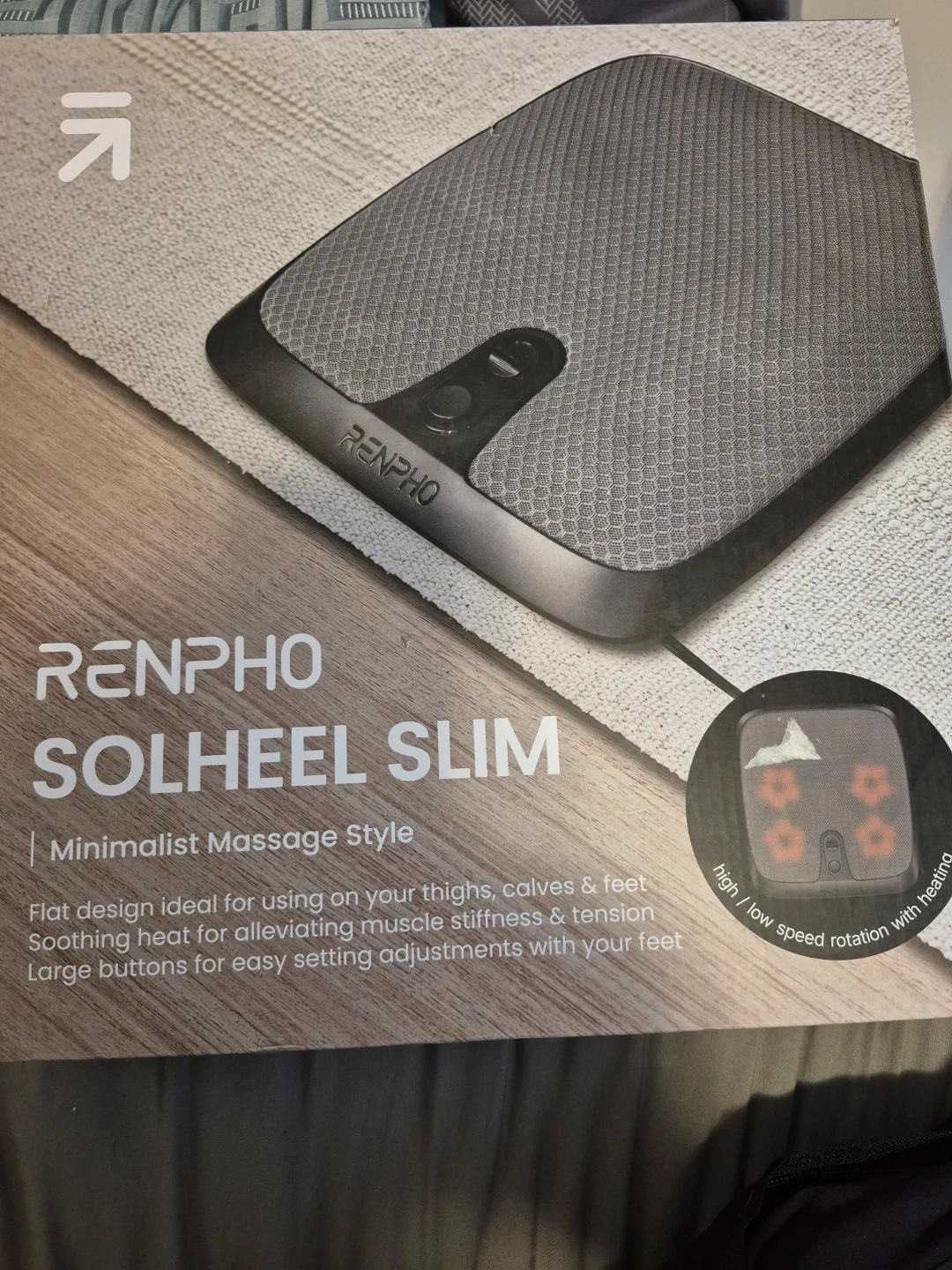 This RENPHO Solheel Slim Foot Massager offers a minimalist design. It includes 2 massage modes and 4 customizable preferences with heating. Designed for easy operation and accessibility, it's suitable for feet, calves, and thighs.