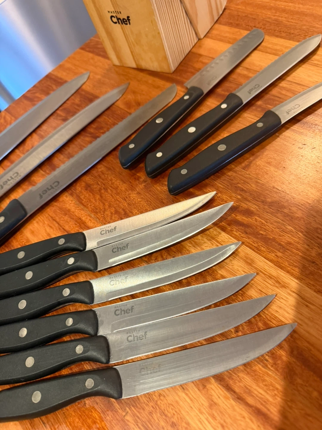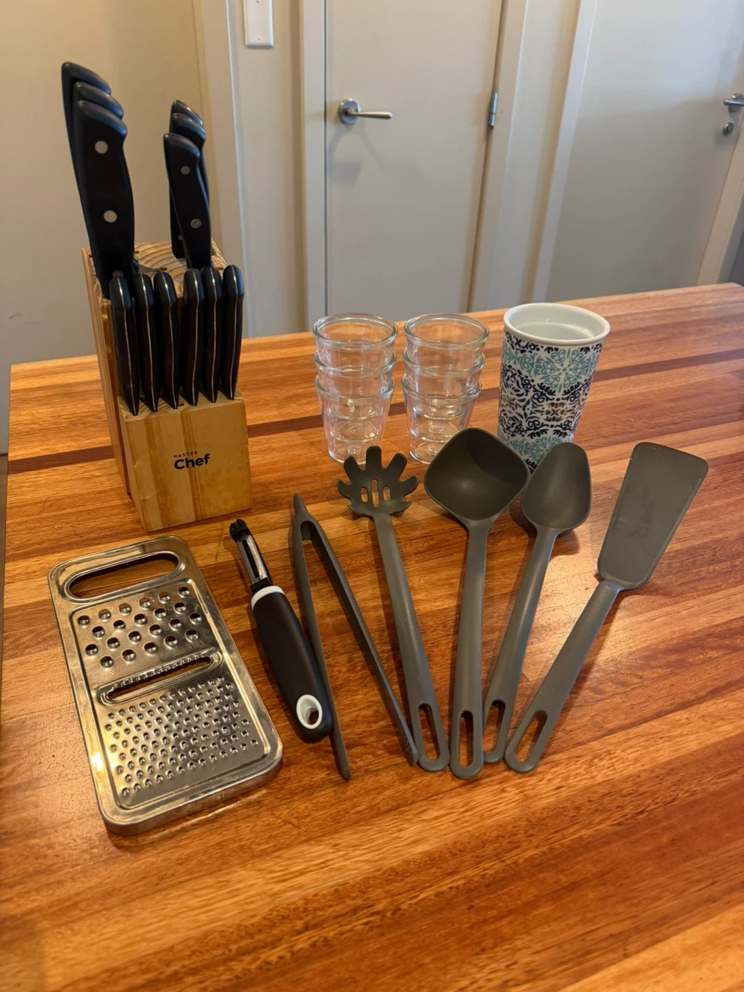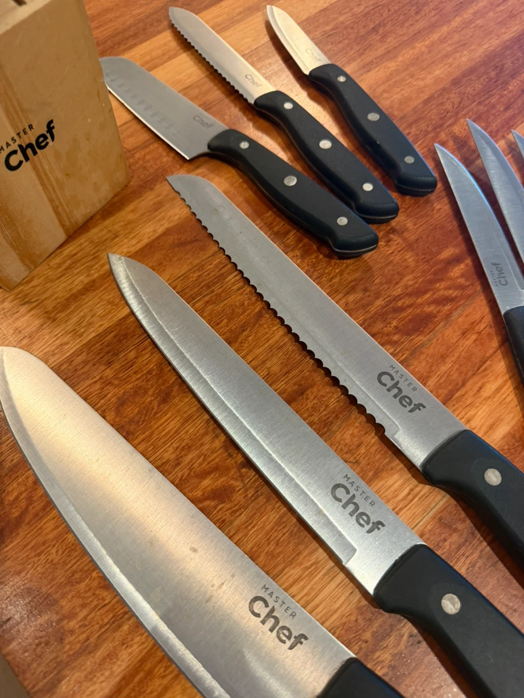 Set of Good chef knives - in good condition Ceramic coffee tumbler - missing lid.